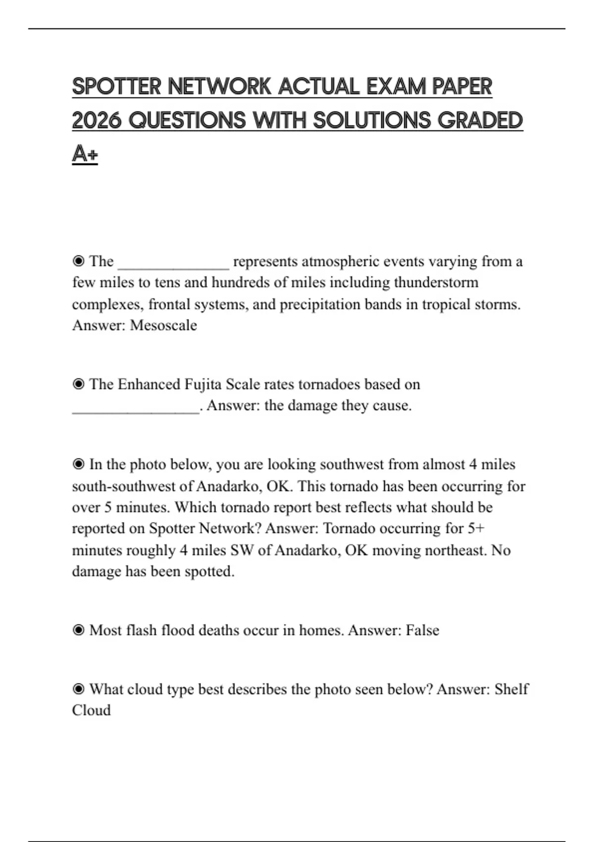 SPOTTER NETWORK ACTUAL EXAM PAPER 2026 QUESTIONS WITH SOLUTIONS GRADED A+