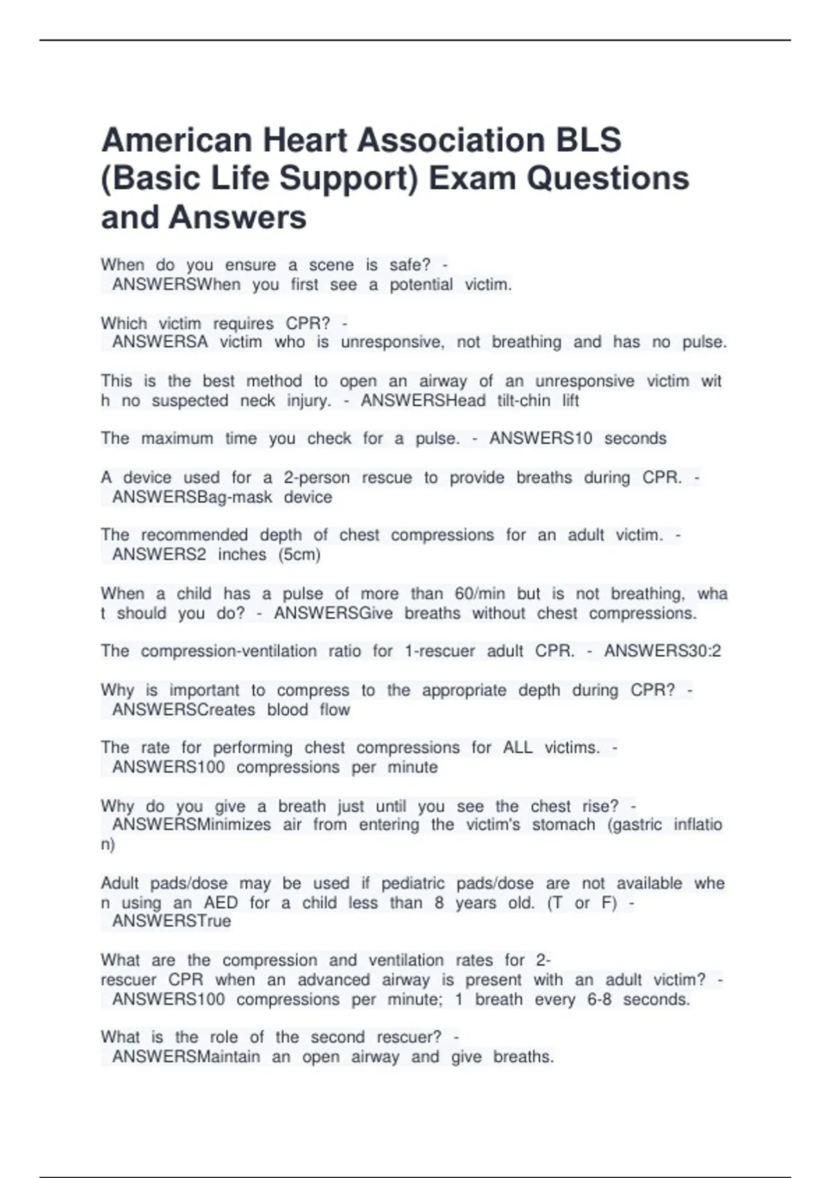 (Basic Life Support) Exam Questions