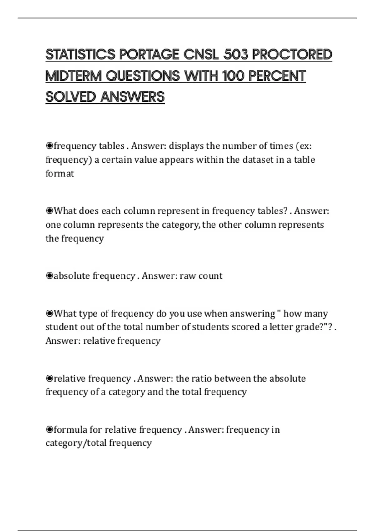 STATISTICS PORTAGE CNSL 503 PROCTORED MIDTERM QUESTIONS WITH 100 PERCENT SOLVED ANSWERS