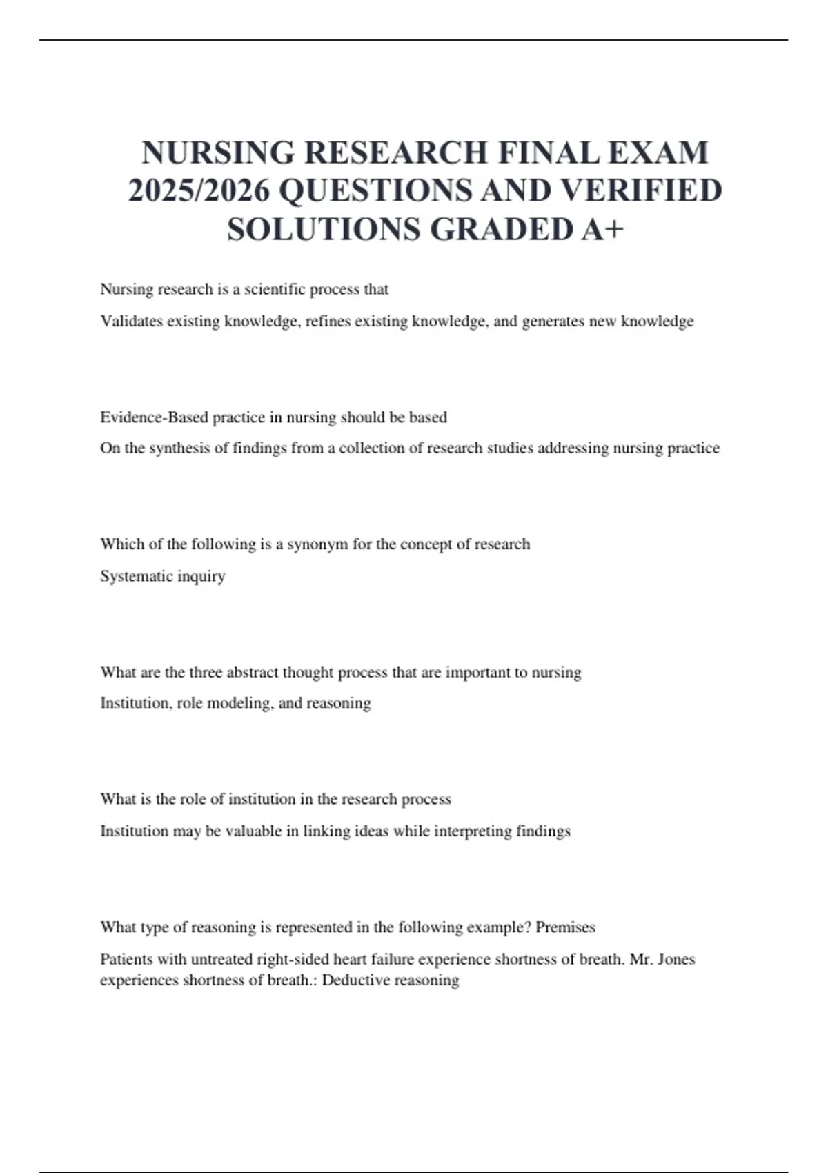 NURSING RESEARCH FINAL EXAM 2025/2026 QUESTIONS AND VERIFIED SOLUTIONS GRADED A+ NURSING RESEARCH FINAL EXAM 2025/2026 NURSING RESEARCH FINAL EXAM 2025/2026 QUESTIONS AND VERIFIED SOLUTIONS