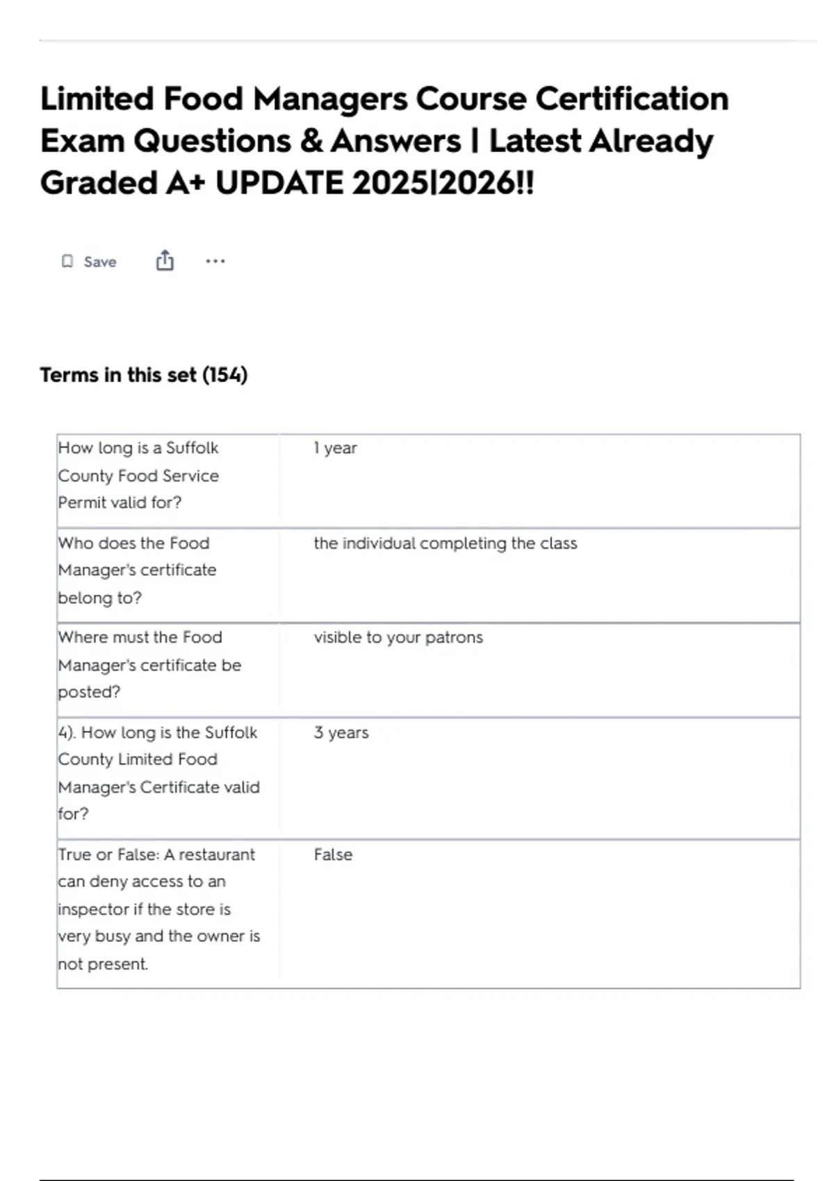 Limited Food Managers Course Certification Exam Questions & Answers | Latest Already Graded A+ UPDATE 2025|2026!!