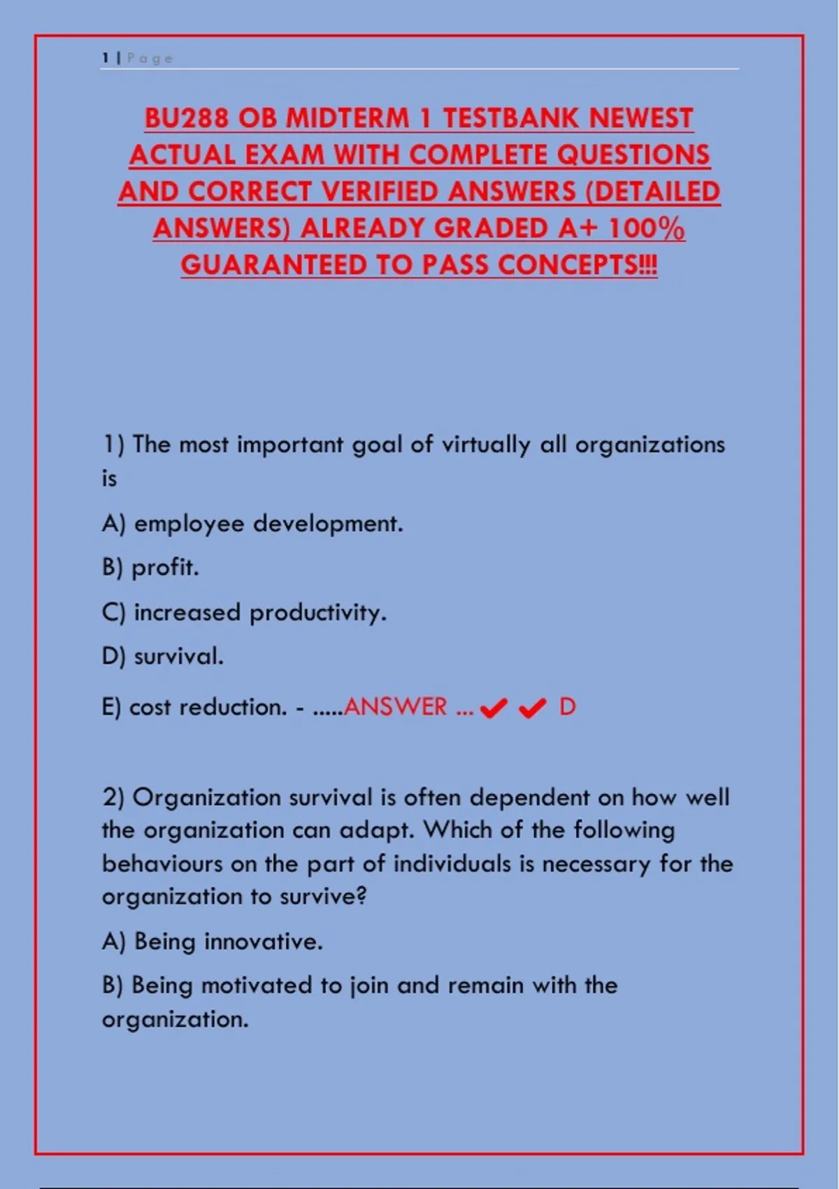 BU288 OB MIDTERM 1 TESTBANK NEWEST