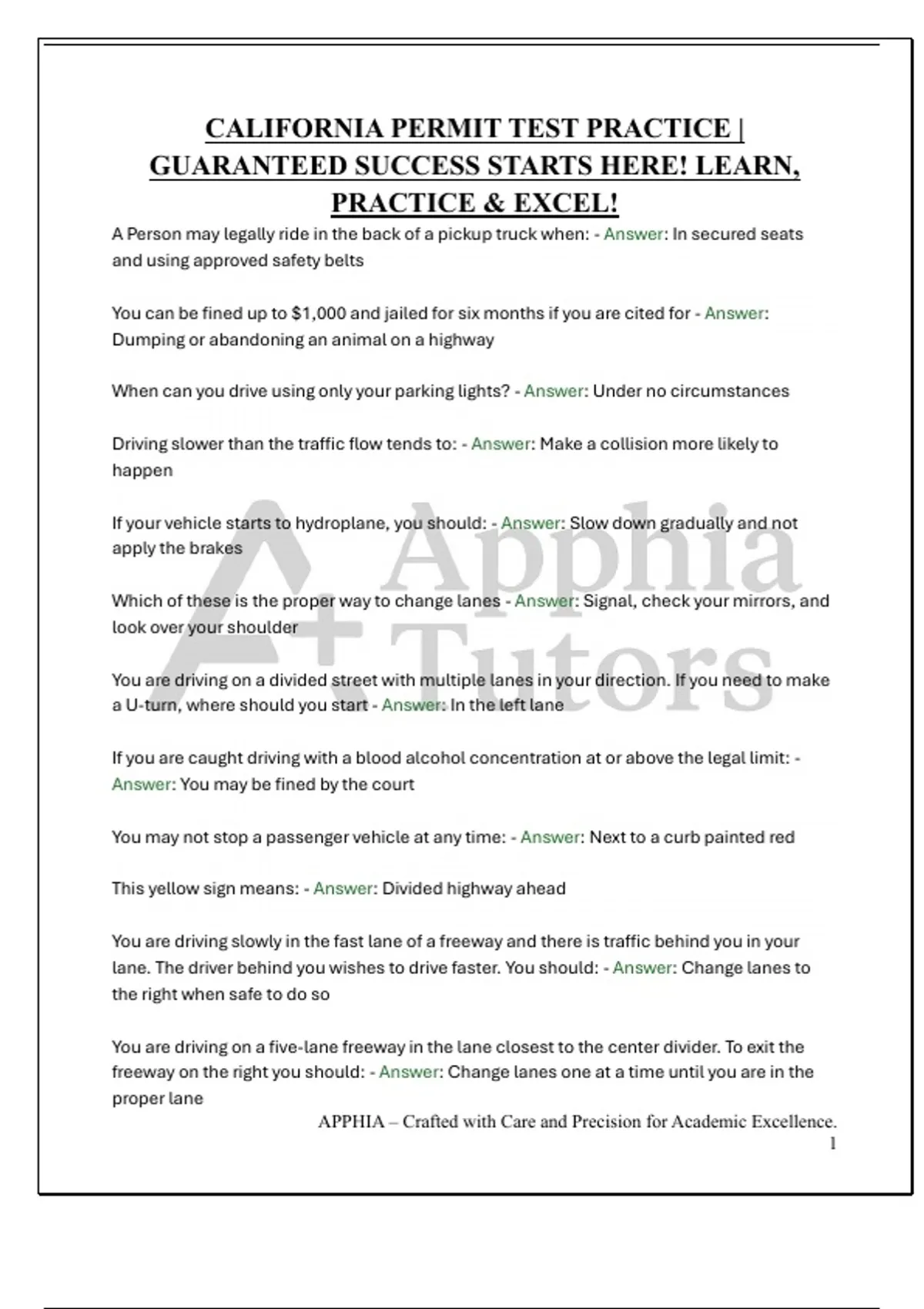 CALIFORNIA PERMIT TEST PRACTICE |