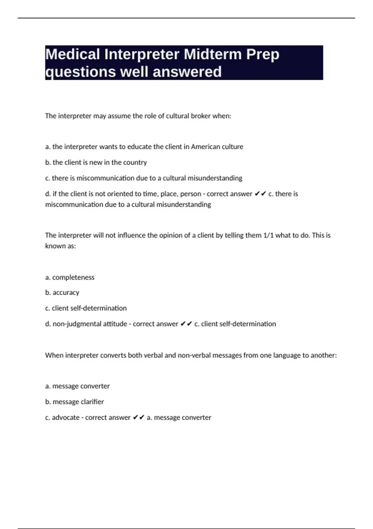 d. client/provider/interpreter - correct answer ✔✔ d. client/provider/interpreter