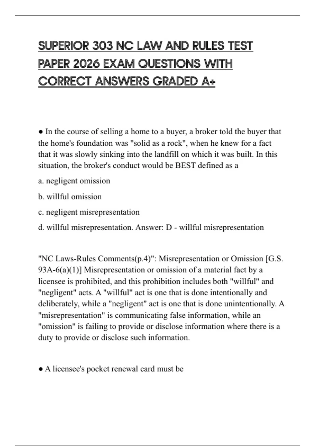 "NC Laws-Rules Comments(p.4)": Misrepresentation or Omission [G.S.