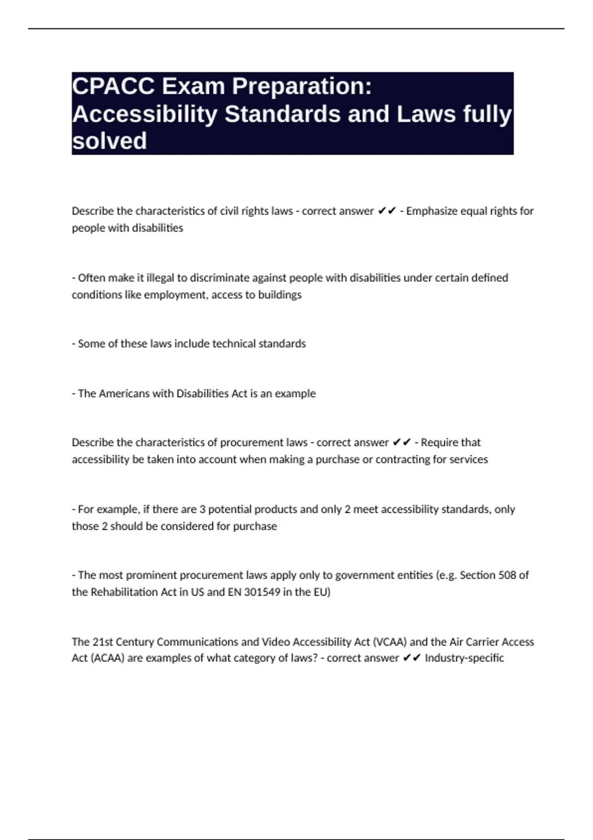 CPACC Exam Preparation: Accessibility Standards and Laws fully solved