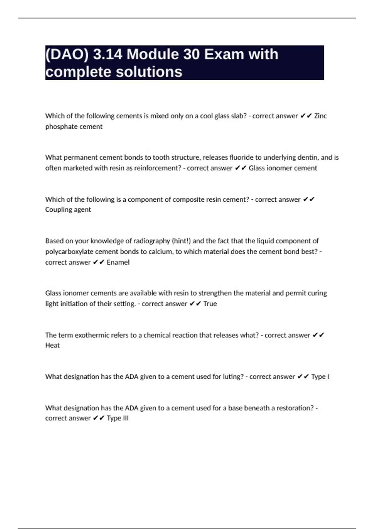 What designation has the ADA given to a cement used for luting? - correct answer ✔✔ Type I