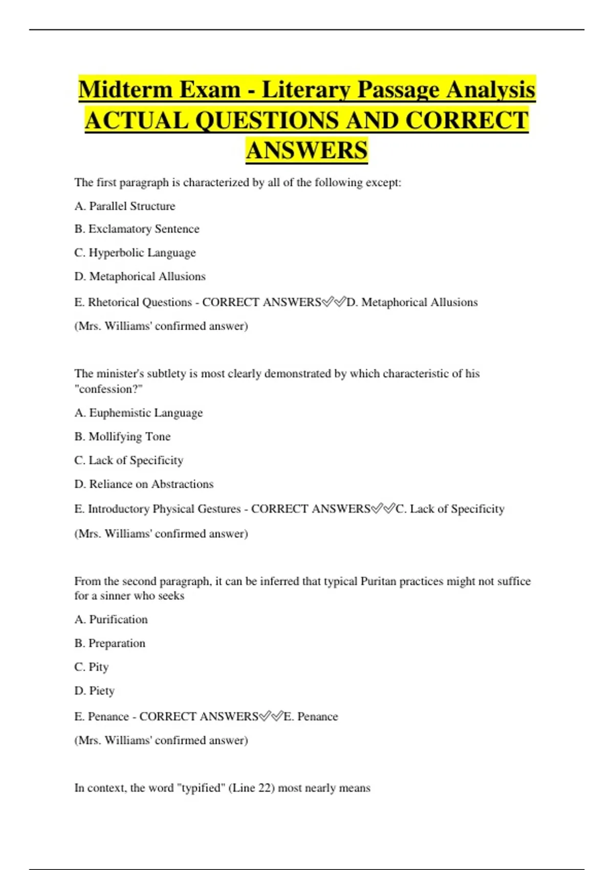 E. Rhetorical Questions - CORRECT ANSWERS✅✅D. Metaphorical Allusions