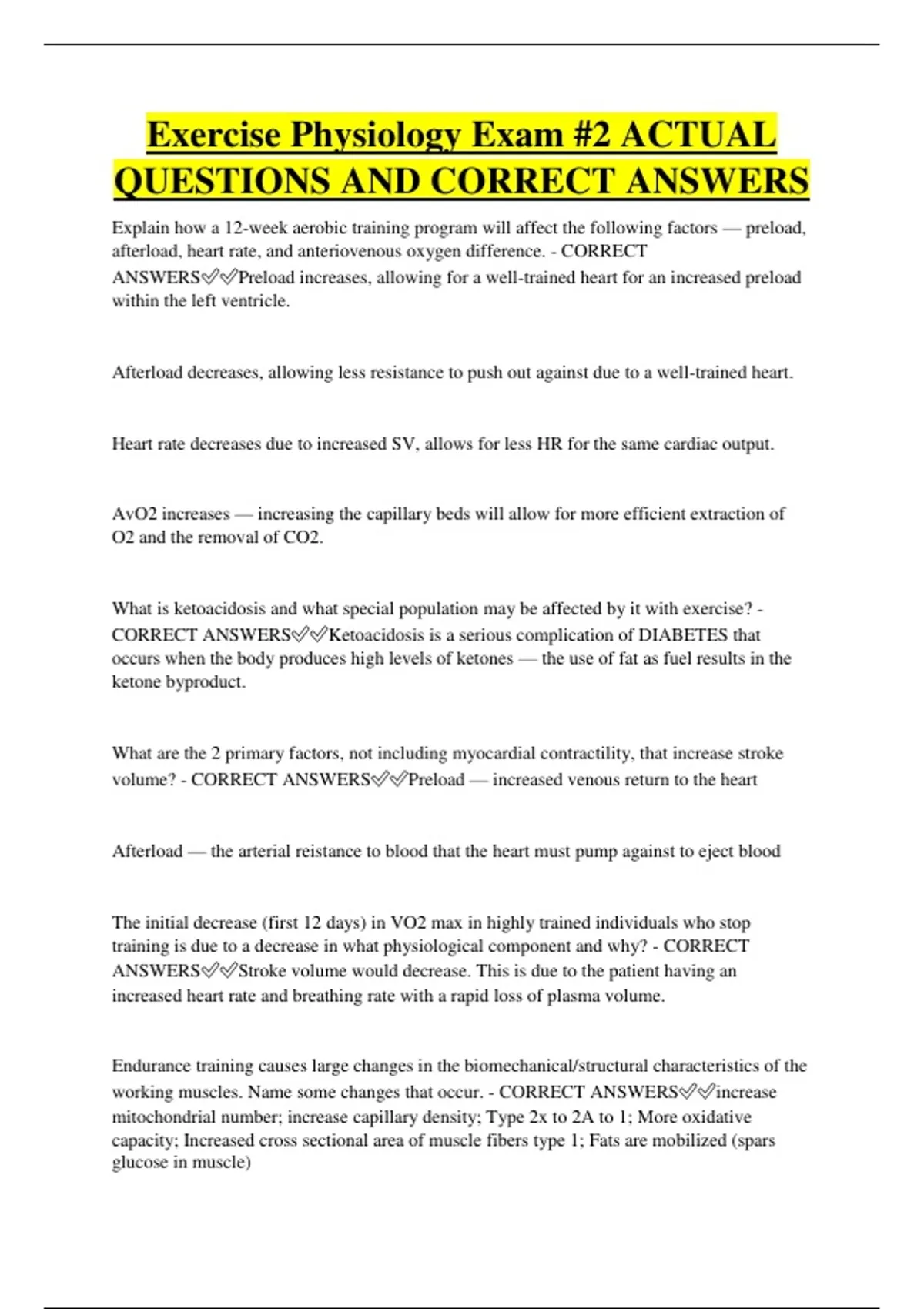 ANSWERS✅✅Preload increases, allowing for a well-trained heart for an increased preload