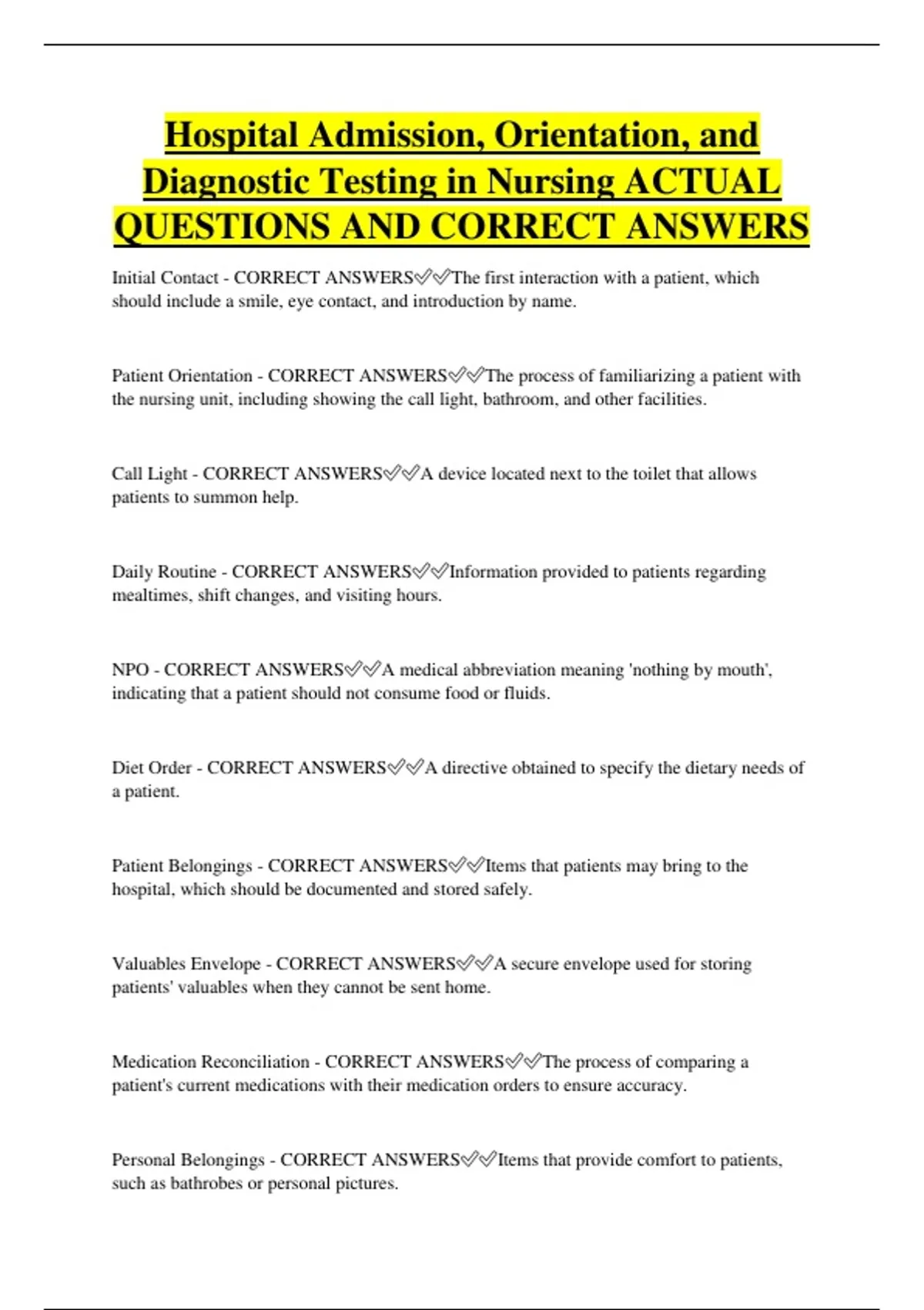 Orientation Handout - CORRECT ANSWERS✅✅A printed document given to patients
