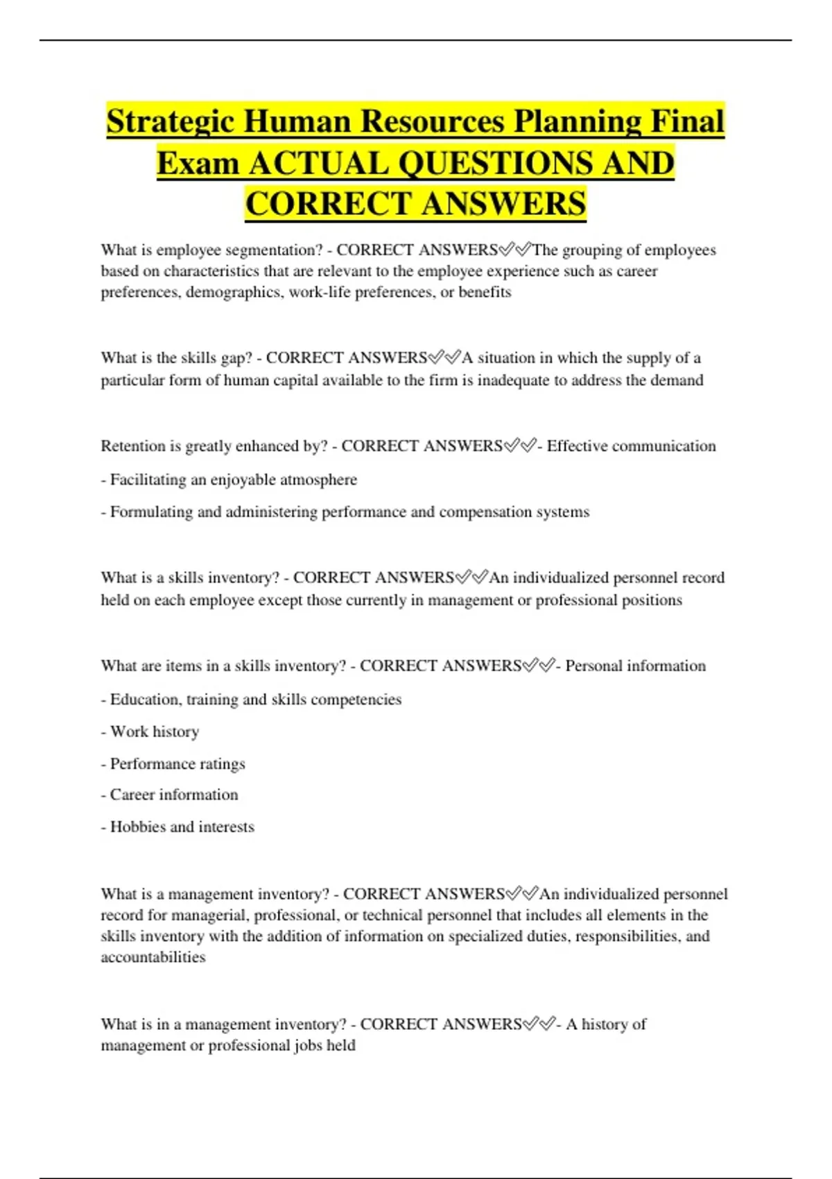 What is a skills inventory? - CORRECT ANSWERS✅✅An individualized personnel record
