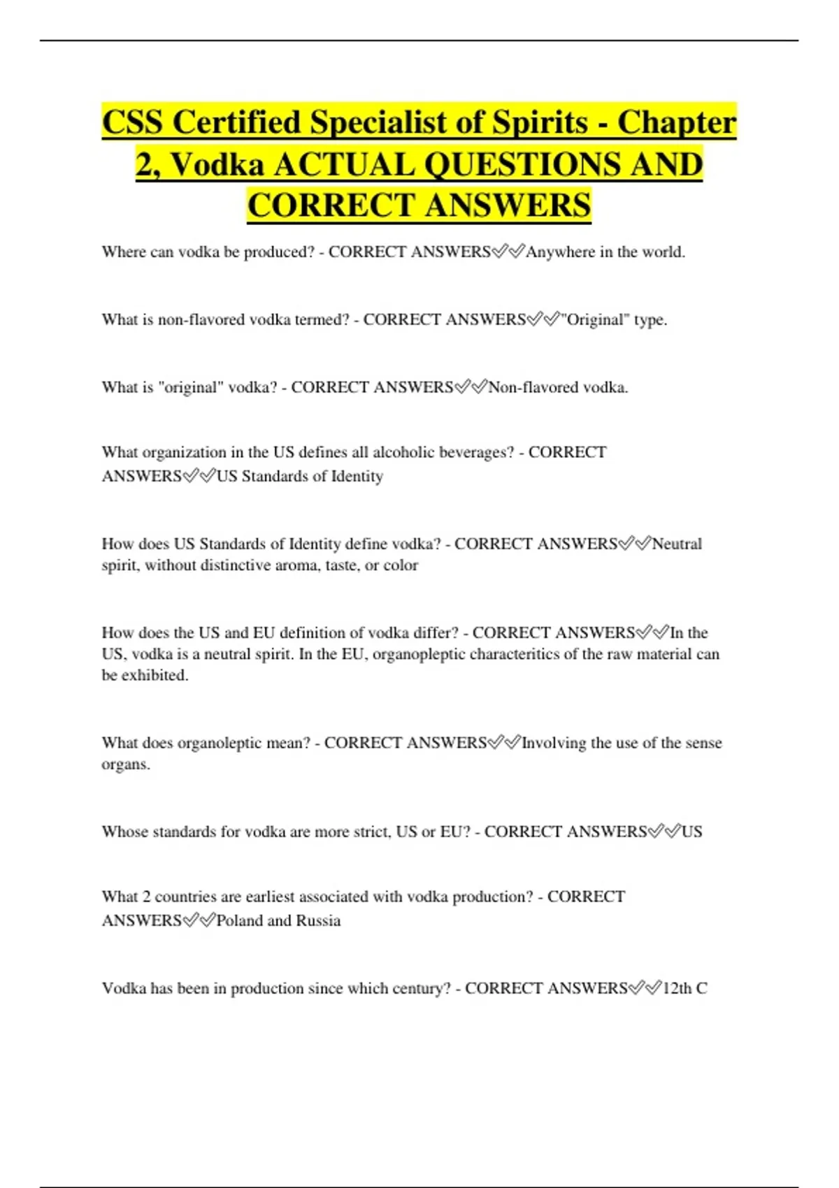 Whose standards for vodka are more strict, US or EU? - CORRECT ANSWERS✅✅US
