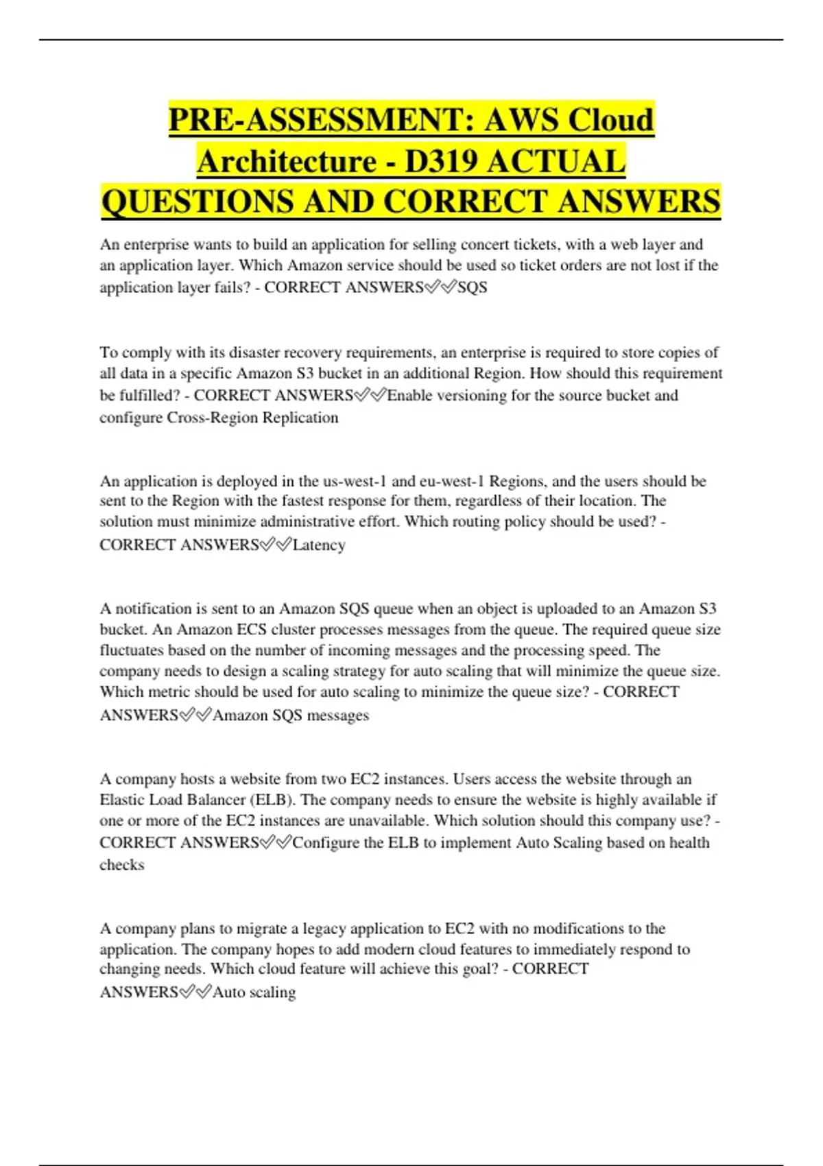 CORRECT ANSWERS✅✅Configure the ELB to implement Auto Scaling based on health