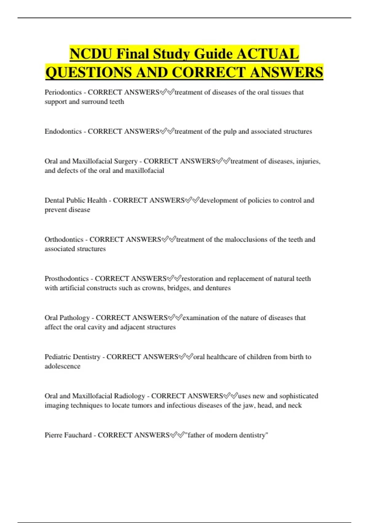 Orthodontics - CORRECT ANSWERS✅✅treatment of the malocclusions of the teeth and