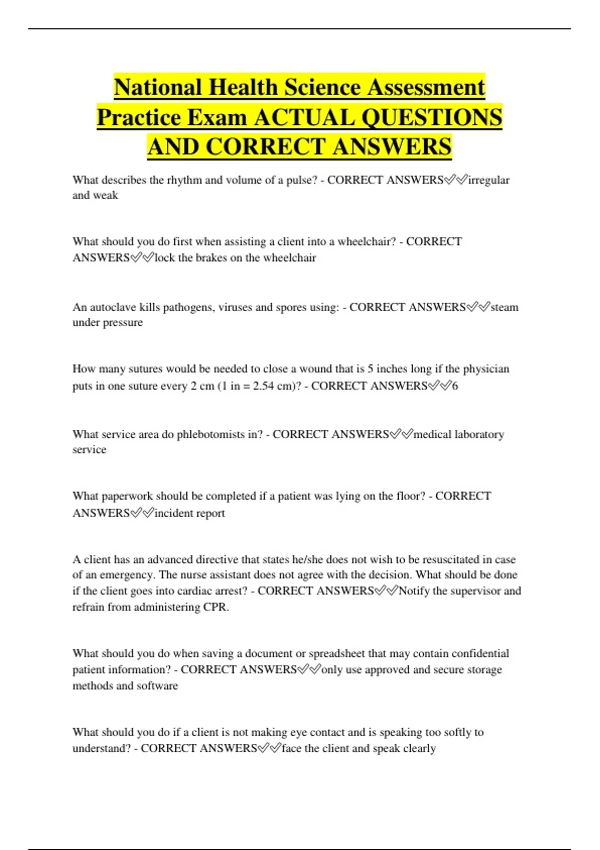 Practice Exam ACTUAL QUESTIONS