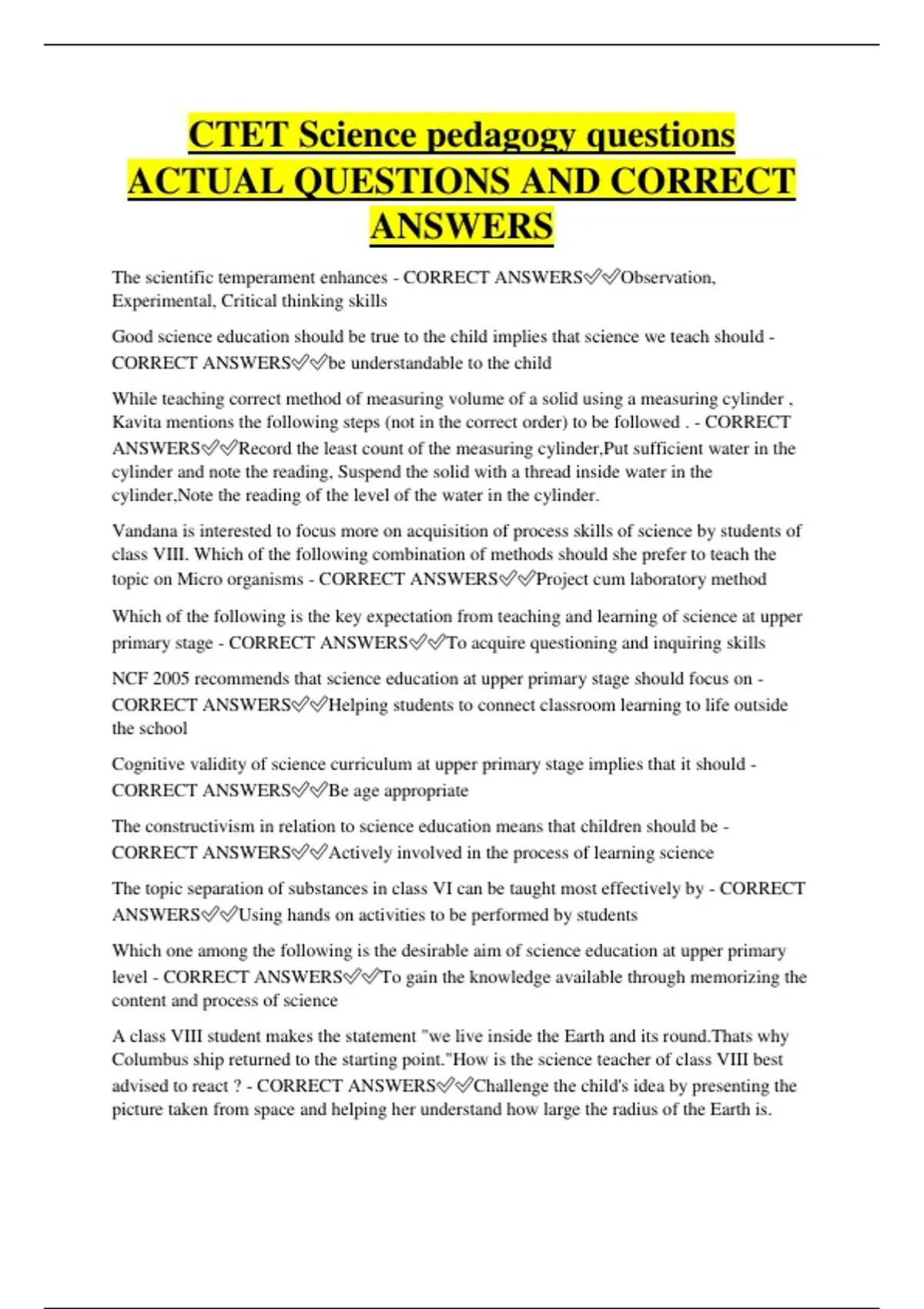 ANSWERS✅✅Using hands on activities to be performed by students