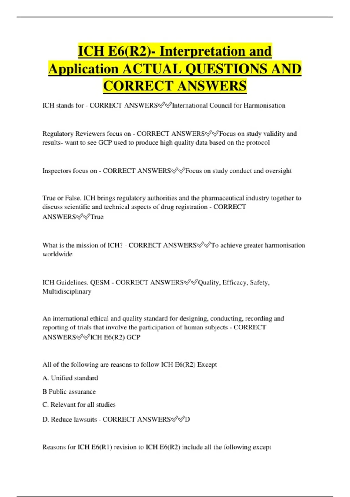 ANSWERS✅✅ICH E5 Acceptance of Foreign Data