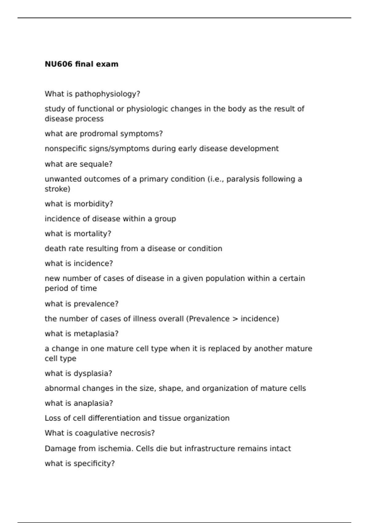 NU606/ NU 606 Final Exam | Advanced Pathophysiology Guide| Questions & Answers| Grade A+ | Latest 2025/2026 Guide | Regis NU606/ NU 606 Final Exam | Advanced Pathophysiology Guide| Questions & Answers| Grade A+ | Latest 2025/2026 Guide | Regis NU606/ NU 606 Final Exam | Advanced Pathophysiology Guide| Questions & Answers| Grade A+ | Latest 2025/2026 Guide | Regis