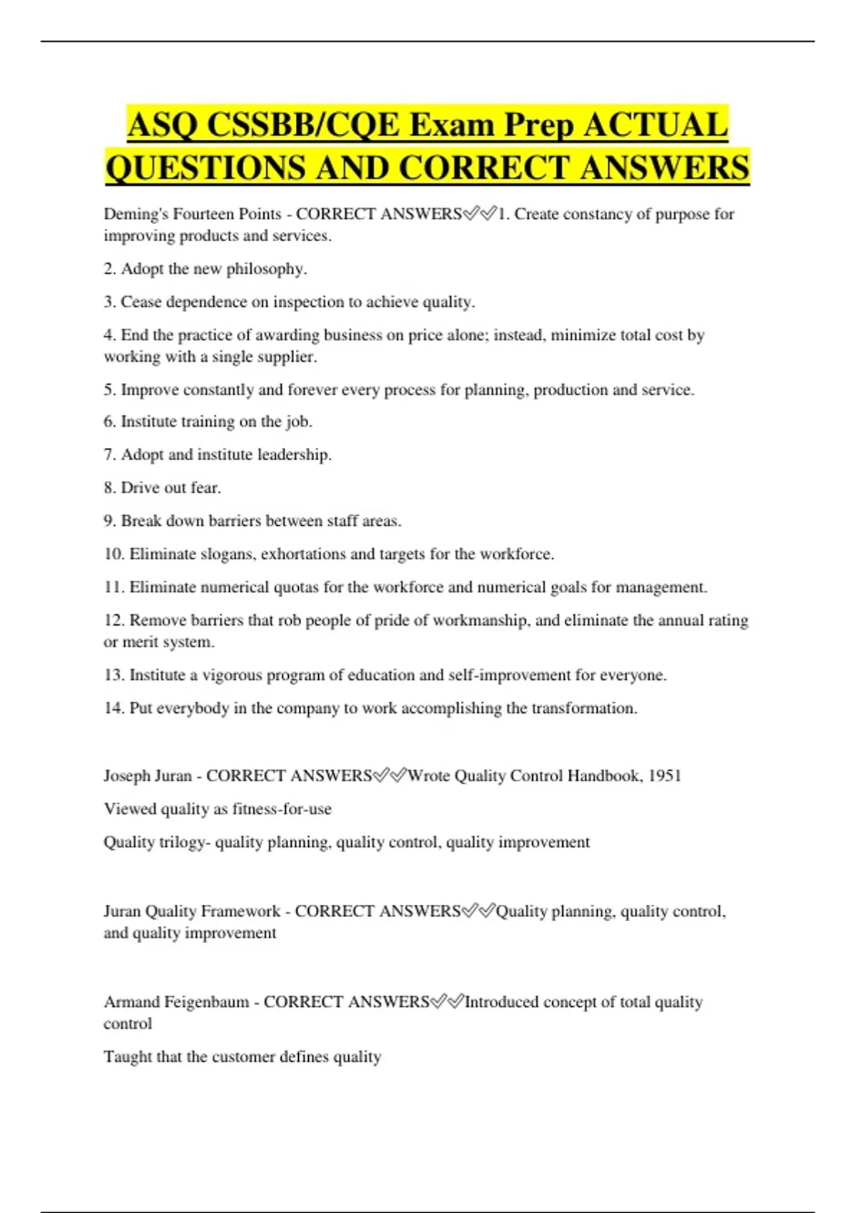 Joseph Juran - CORRECT ANSWERS✅✅Wrote Quality Control Handbook, 1951
