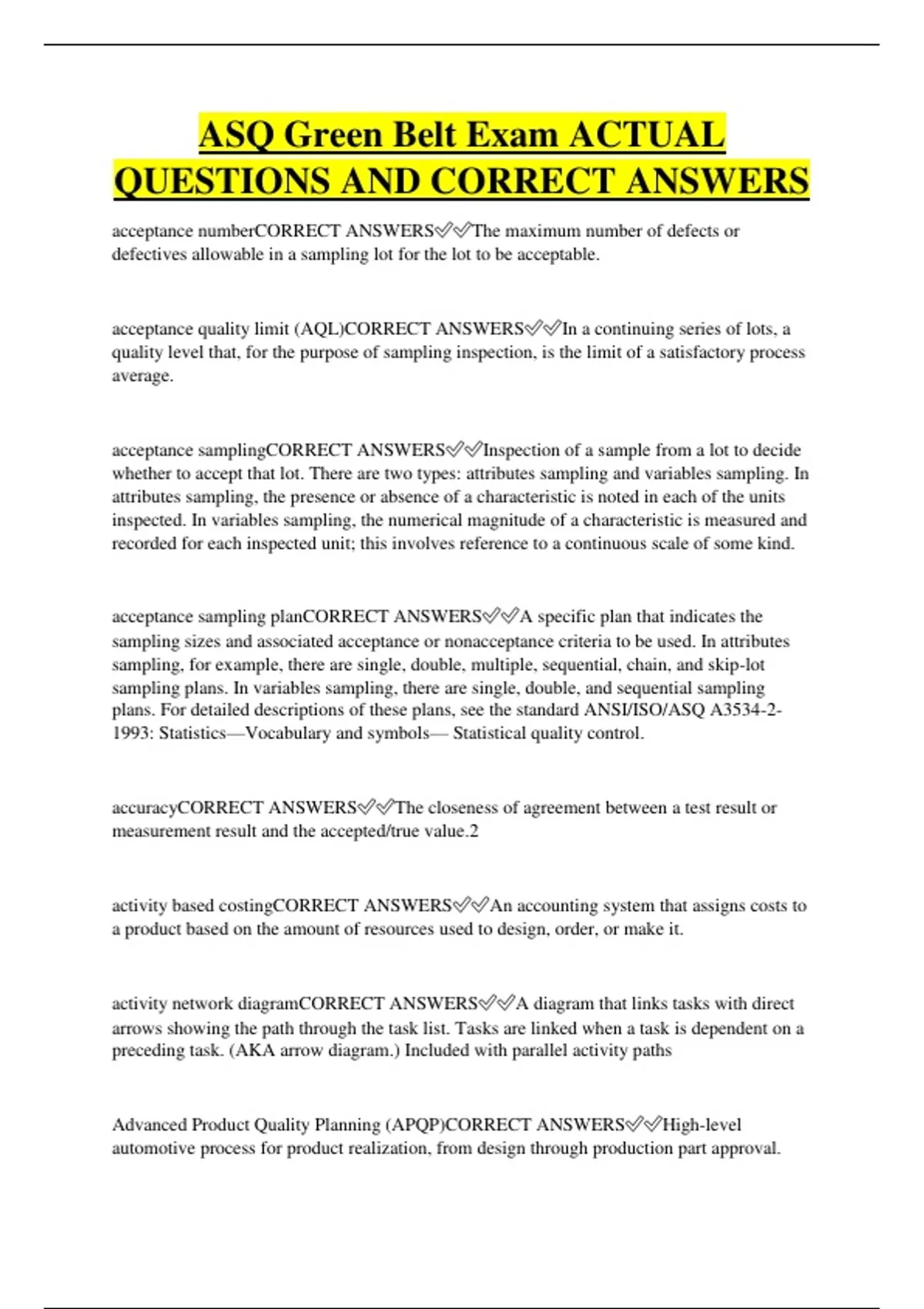 American Society for Quality (ASQ)CORRECT ANSWERS✅✅A global community of