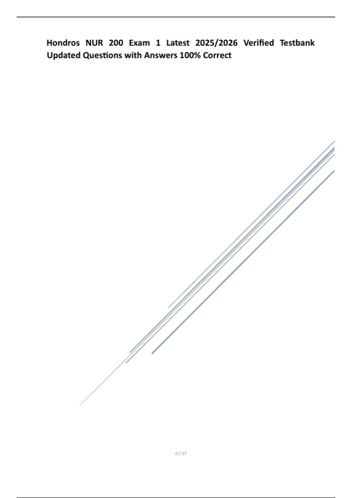 Hondros NUR 200 Exam 1 Latest 2025/2026 Verified Testbank Updated Questions with Answers 100- Correct