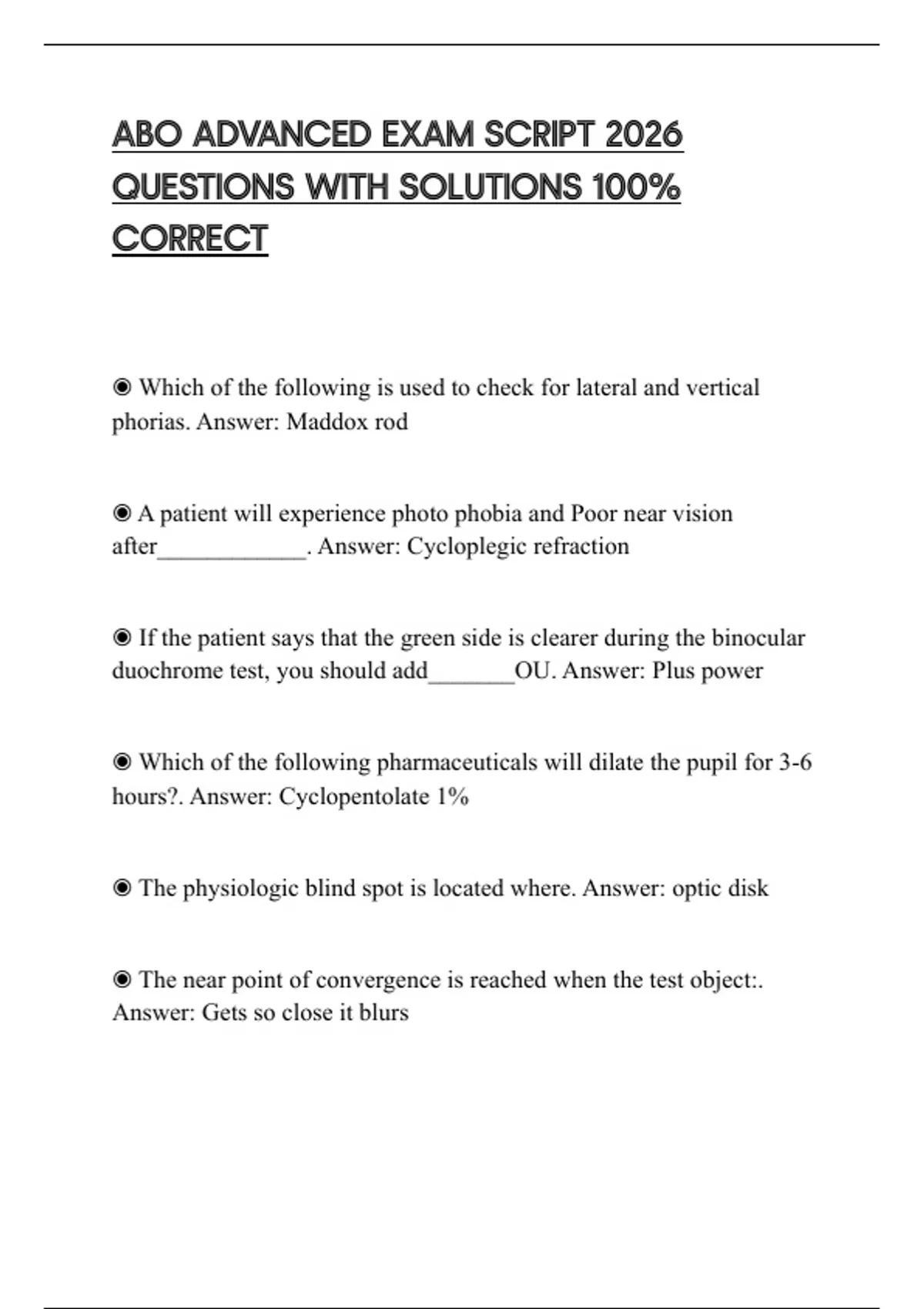 ABO ADVANCED EXAM SCRIPT 2026 QUESTIONS WITH SOLUTIONS 100% CORRECT