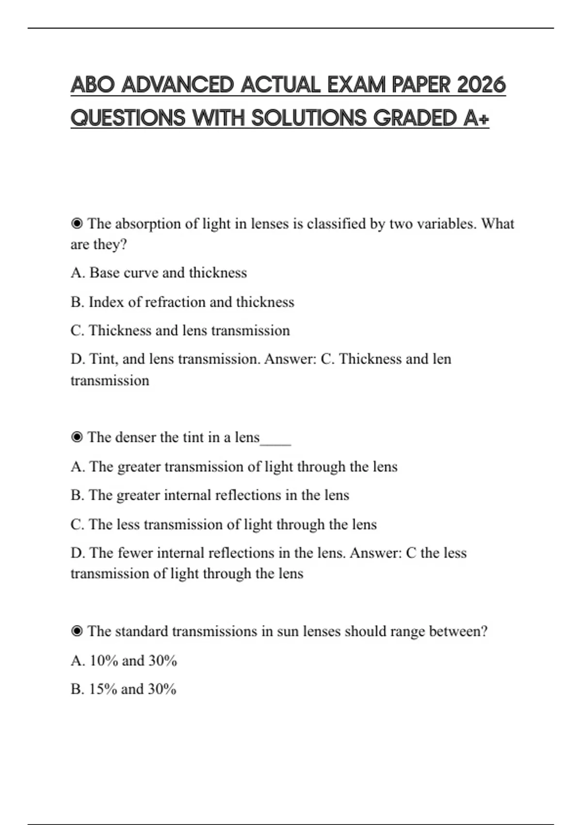 ABO ADVANCED ACTUAL EXAM PAPER 2026 QUESTIONS WITH SOLUTIONS GRADED A+