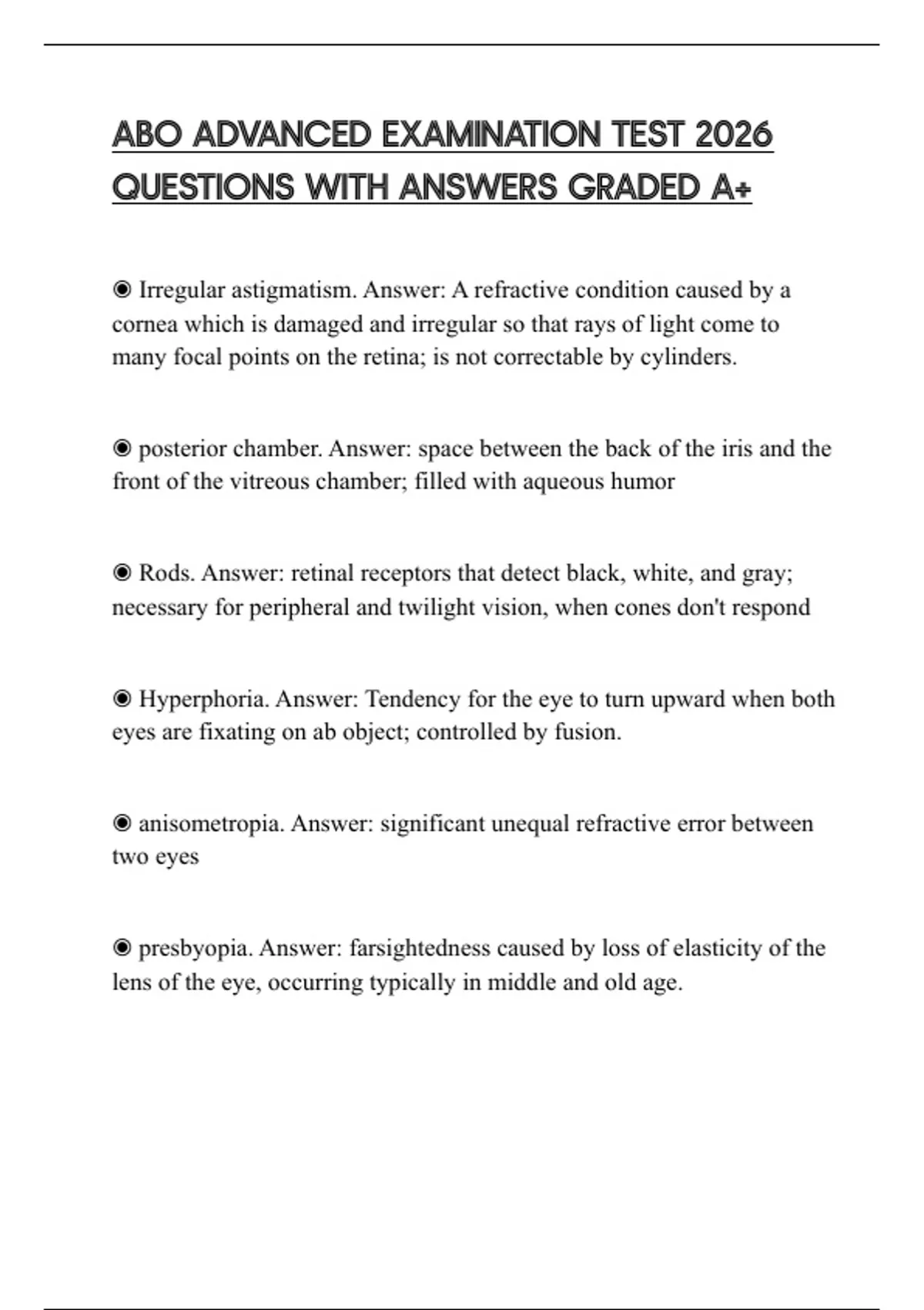 ABO ADVANCED EXAMINATION TEST 2026 QUESTIONS WITH ANSWERS GRADED A+