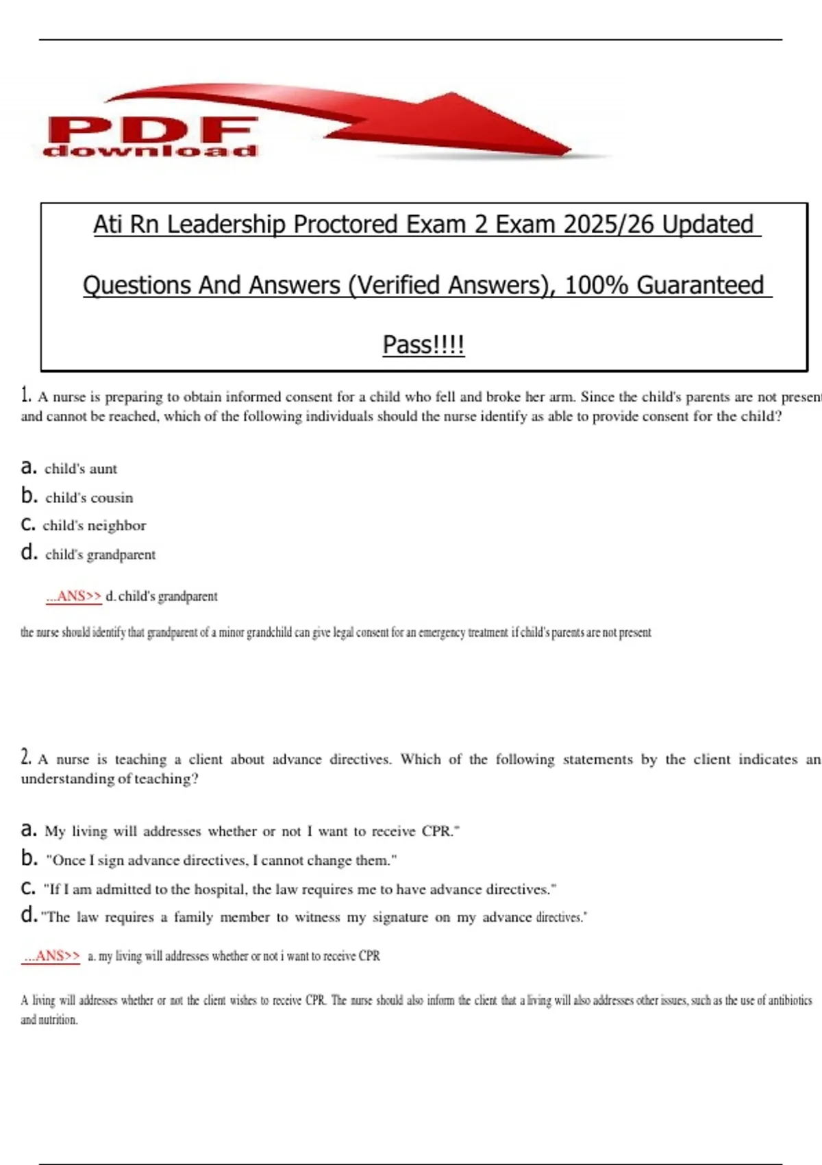 1. A nurse is preparing to obtain informed consent for a child who fell and broke her arm. Since the child's parents are not present