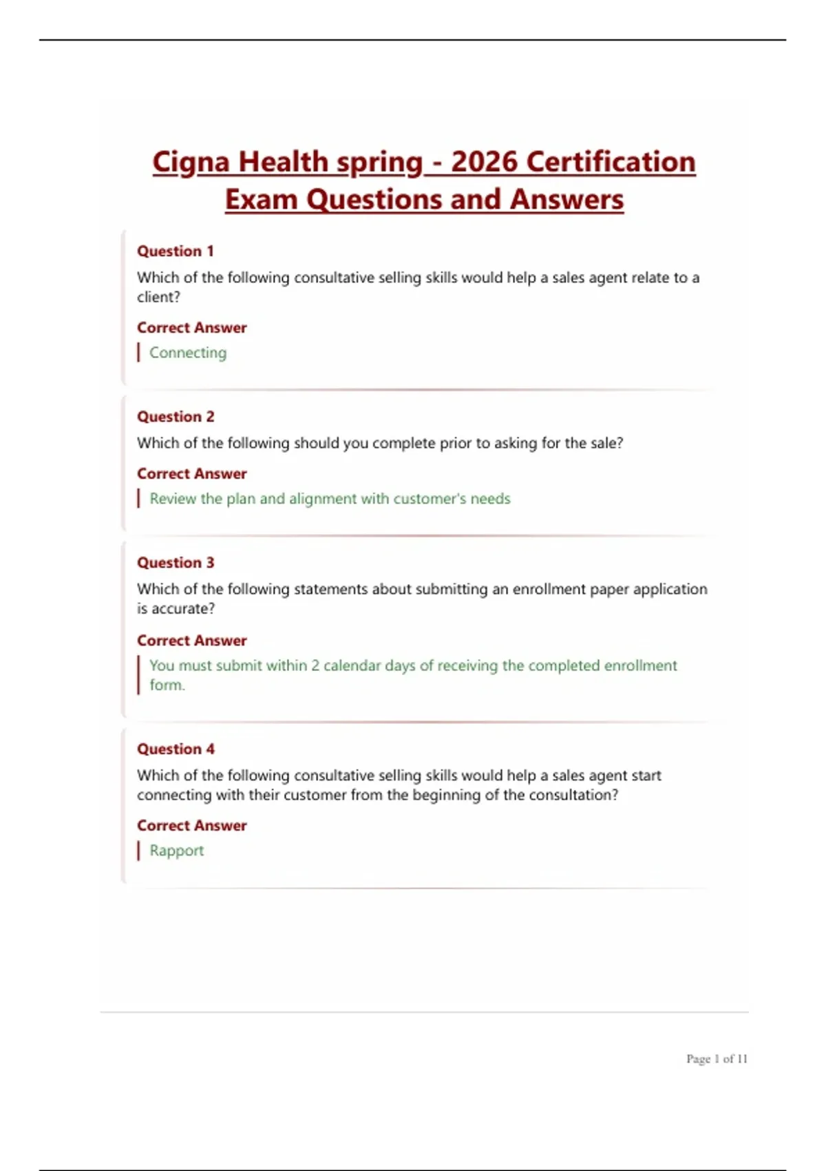 Cigna Health spring - 2026 Certification Exam Questions and Answers.
