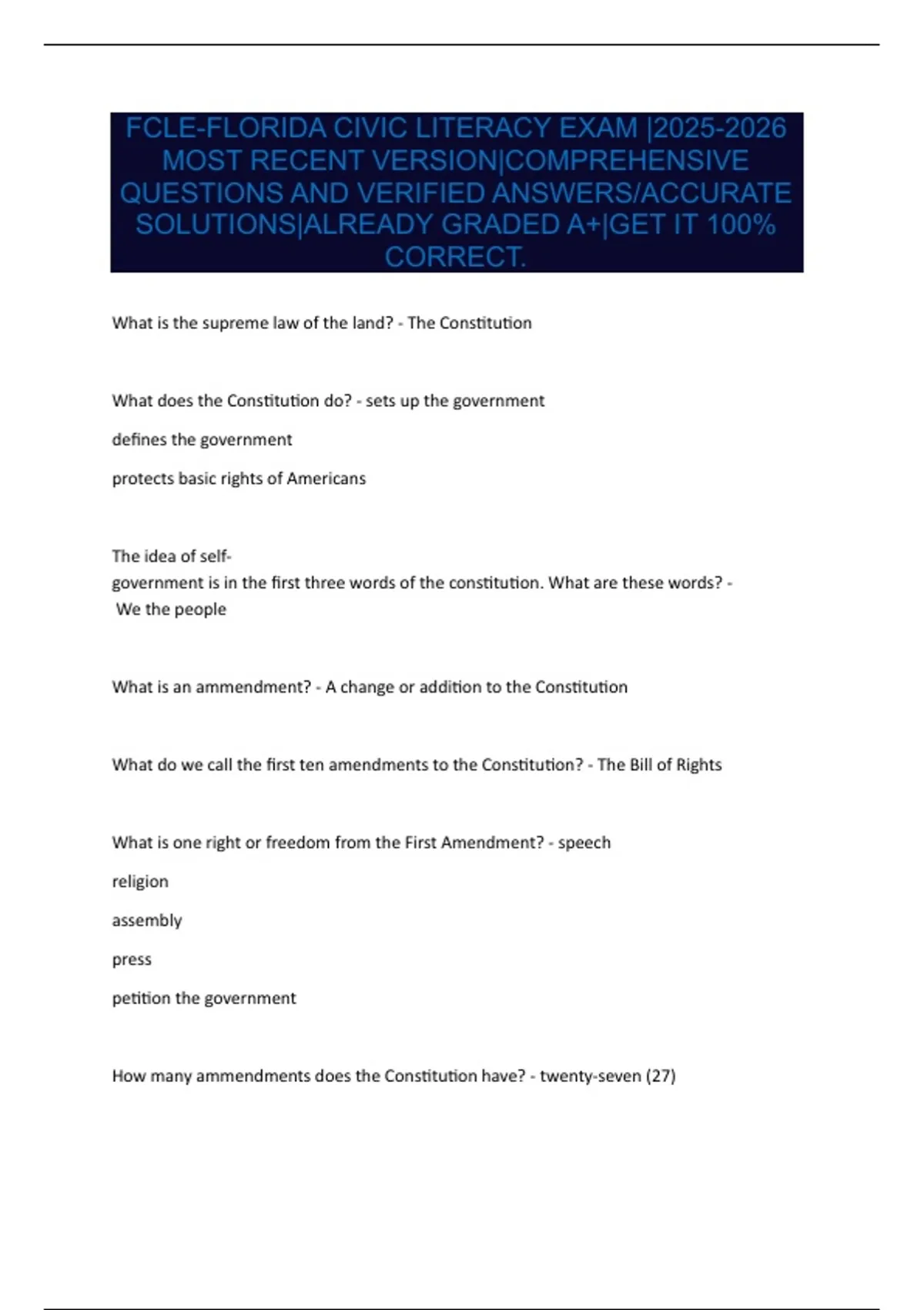 FCLE-FLORIDA CIVIC LITERACY EXAM |2025-2026