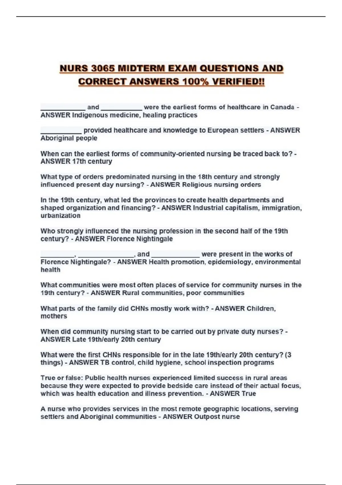 NURS 3065 MIDTERM EXAM QUESTIONS AND CORRECT ANSWERS 100% VERIFIED!!...