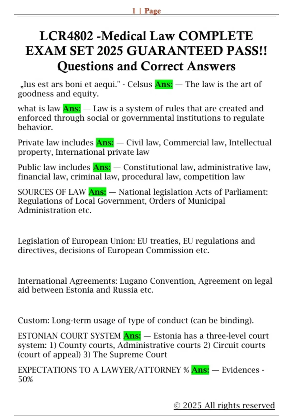 LCR4802 -Medical Law COMPLETE EXAM SET 2025 GUARANTEED PASS!! Questions and Correct Answers