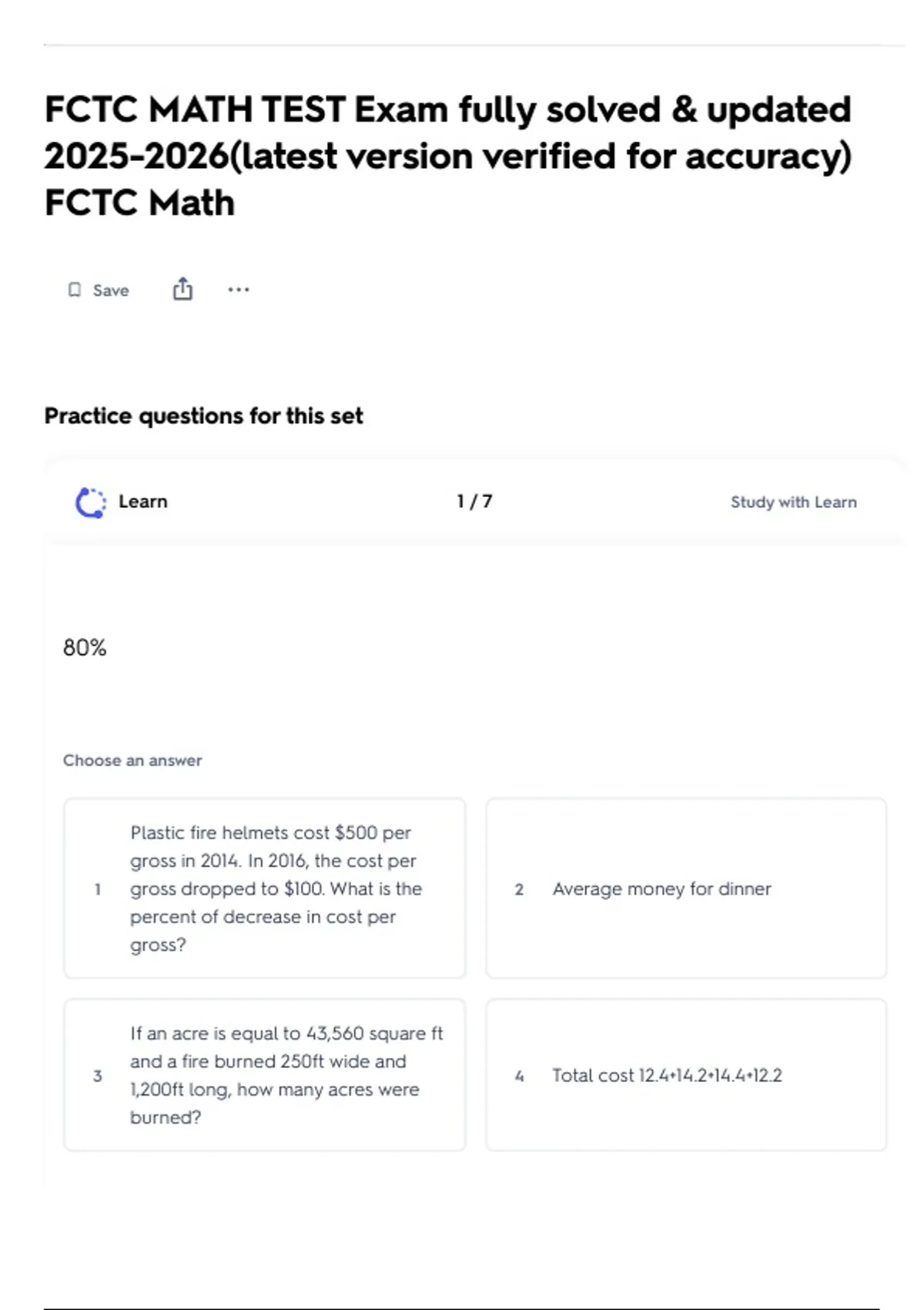 FCTC MATH TEST Exam fully solved & updated (latest version verified for accuracy) FCTC Math