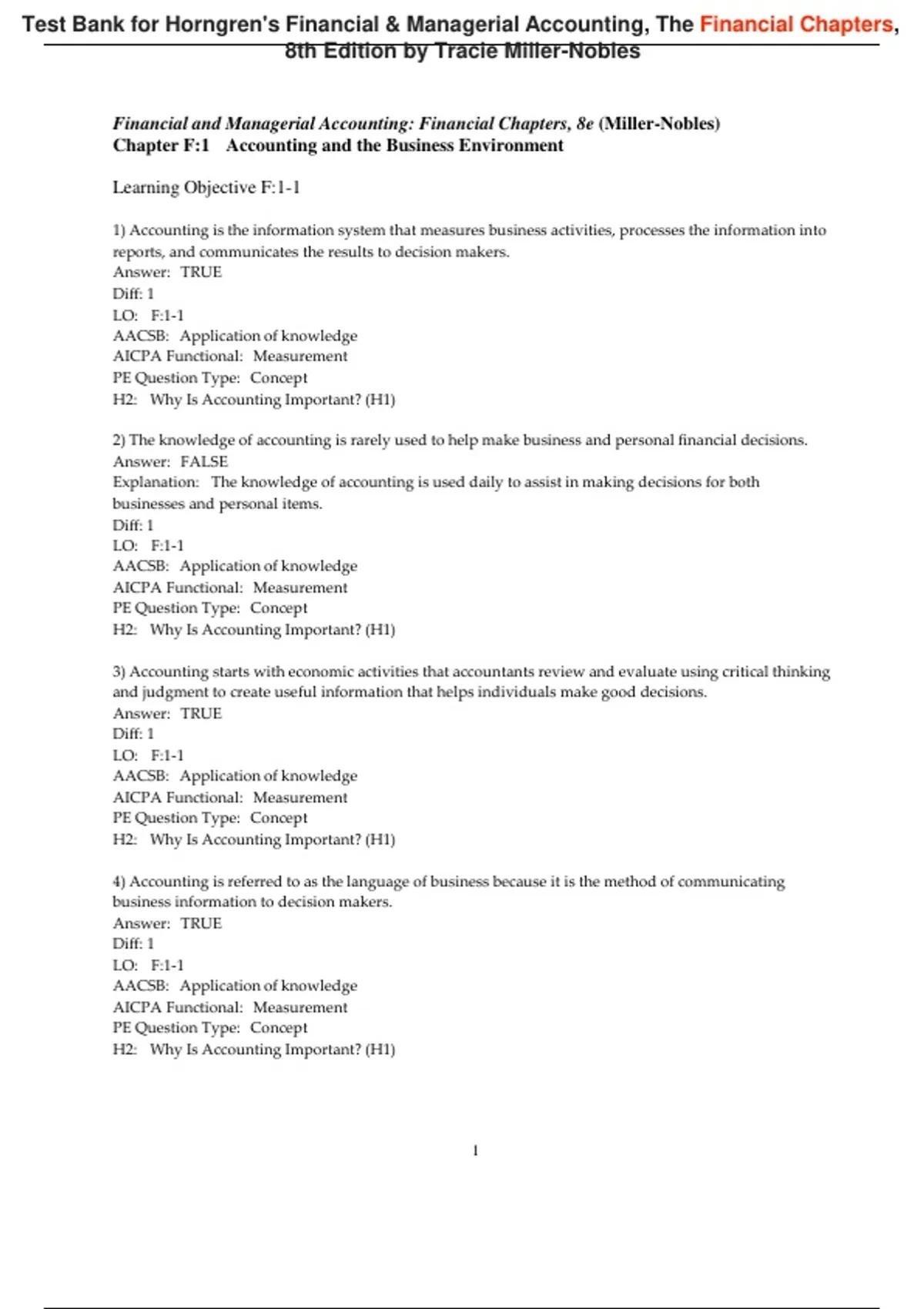 Financial and Managerial Accounting: Financial Chapters, 8e (Miller-Nobles)