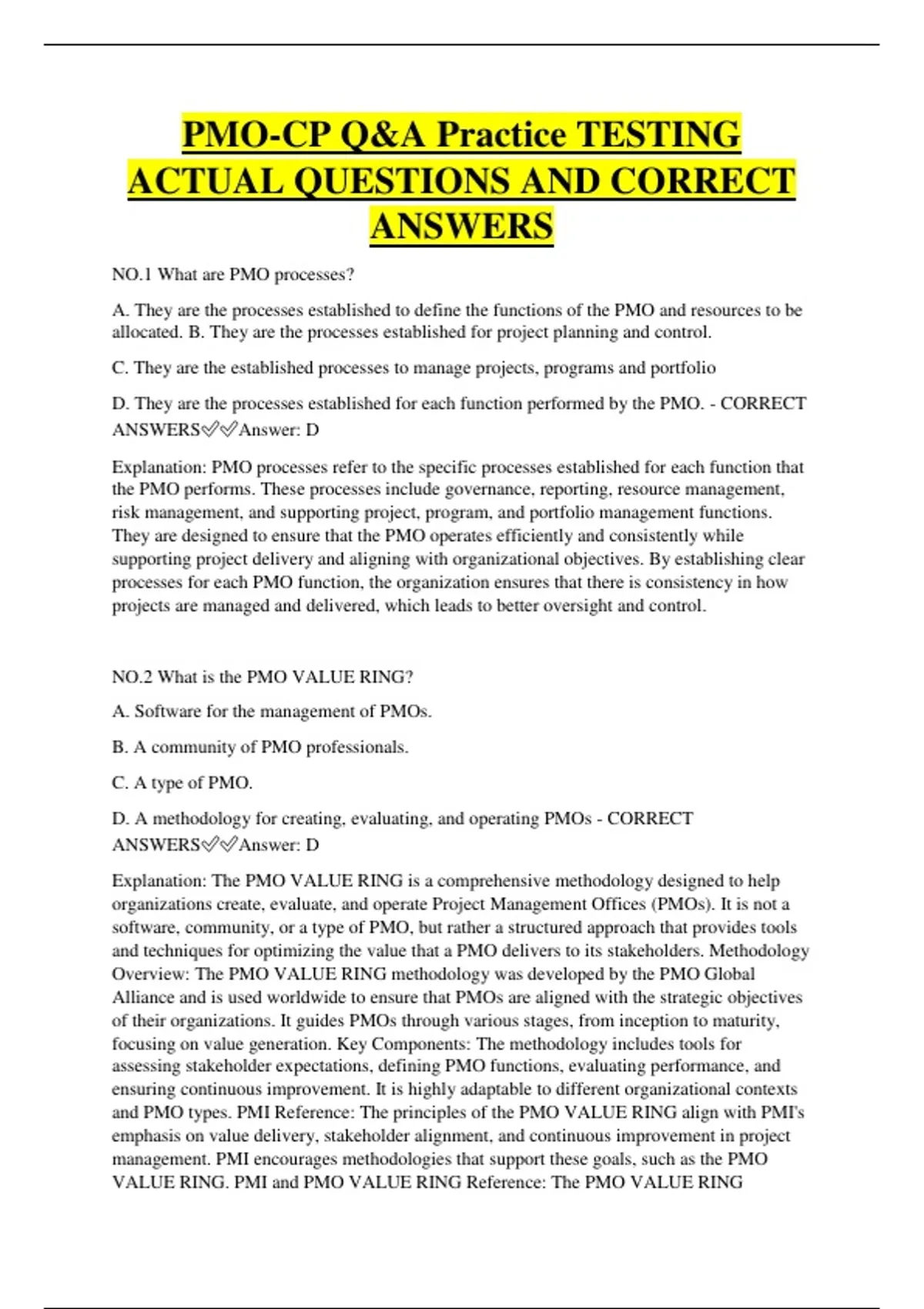 and PMO types. PMI Reference: The principles of the PMO VALUE RING align with PMI's