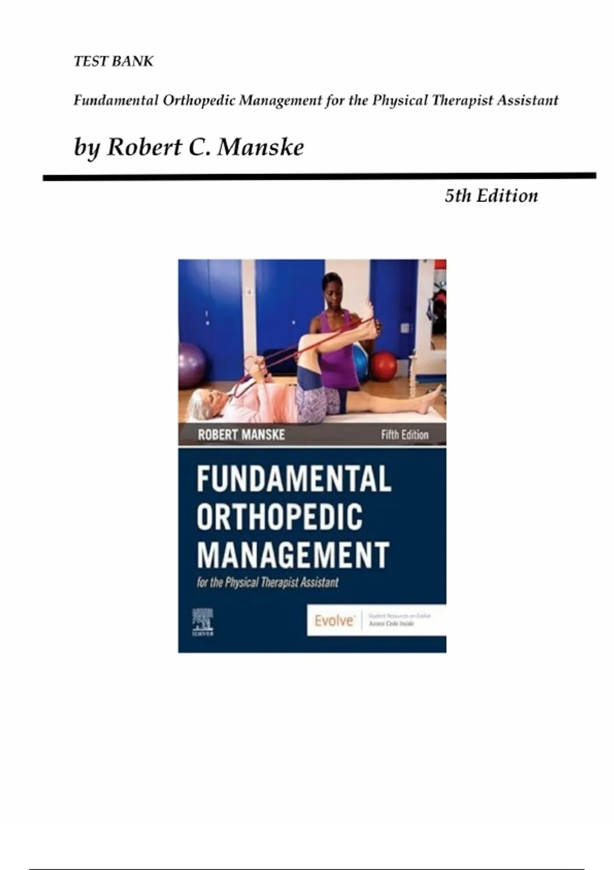Fundamental Orthopedic Management for the Physical Therapist Assistant – 5th Edition (Robert C. Manske) | Complete Test Bank for Chapters 1–29