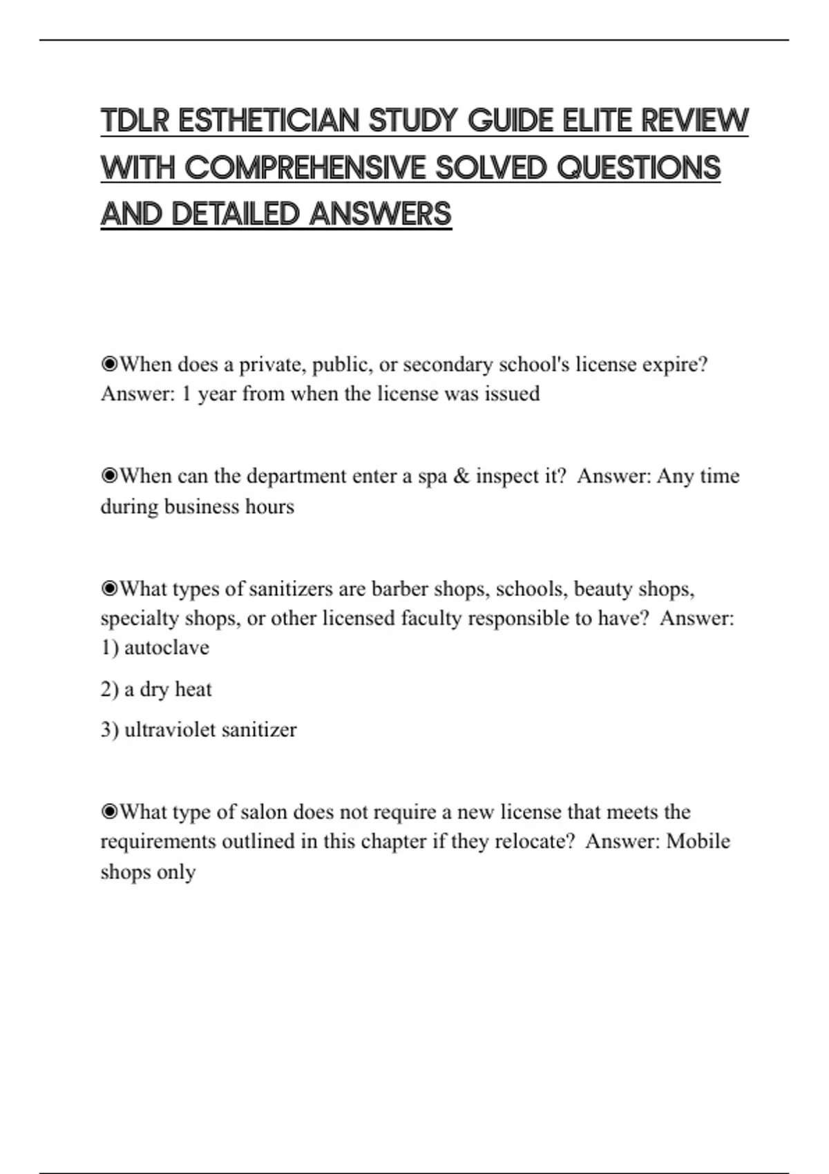 ◉When must beauty schools be inspected? Answer: 2x a year