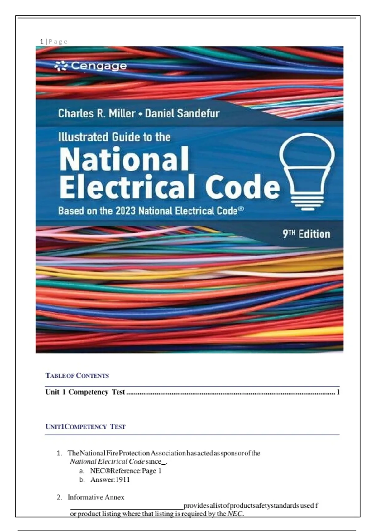 SOLUTION AND ANSWER GUIDE TO THE Illustrated Guide to the National Electrical Code 9th Edition by Charles Miller ISBN:978-0357766712 ALL CHAPTERS COVERED COVERED YOUR ULTIMATE GUIDE!!!!!!!
