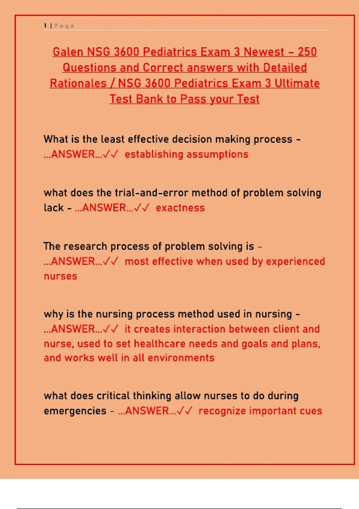 Prepare for your NSG 3600 Pediatrics Exam 3 with our newest study guide. Features practice questions and answers for childhood illnesses, growth milestones, and family-centered care.
