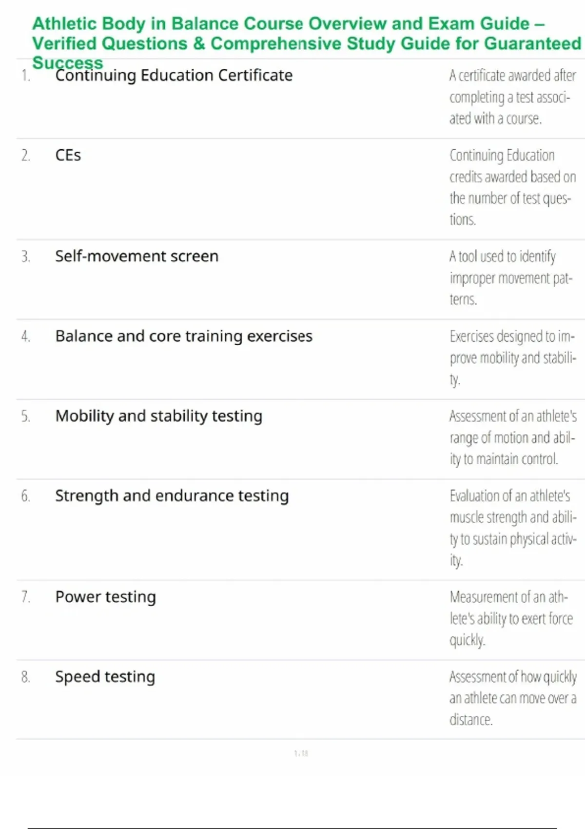 Athletic Body in Balance Course Overview and Exam Guide – Verified Questions & Comprehensive Study Guide for Guaranteed Success