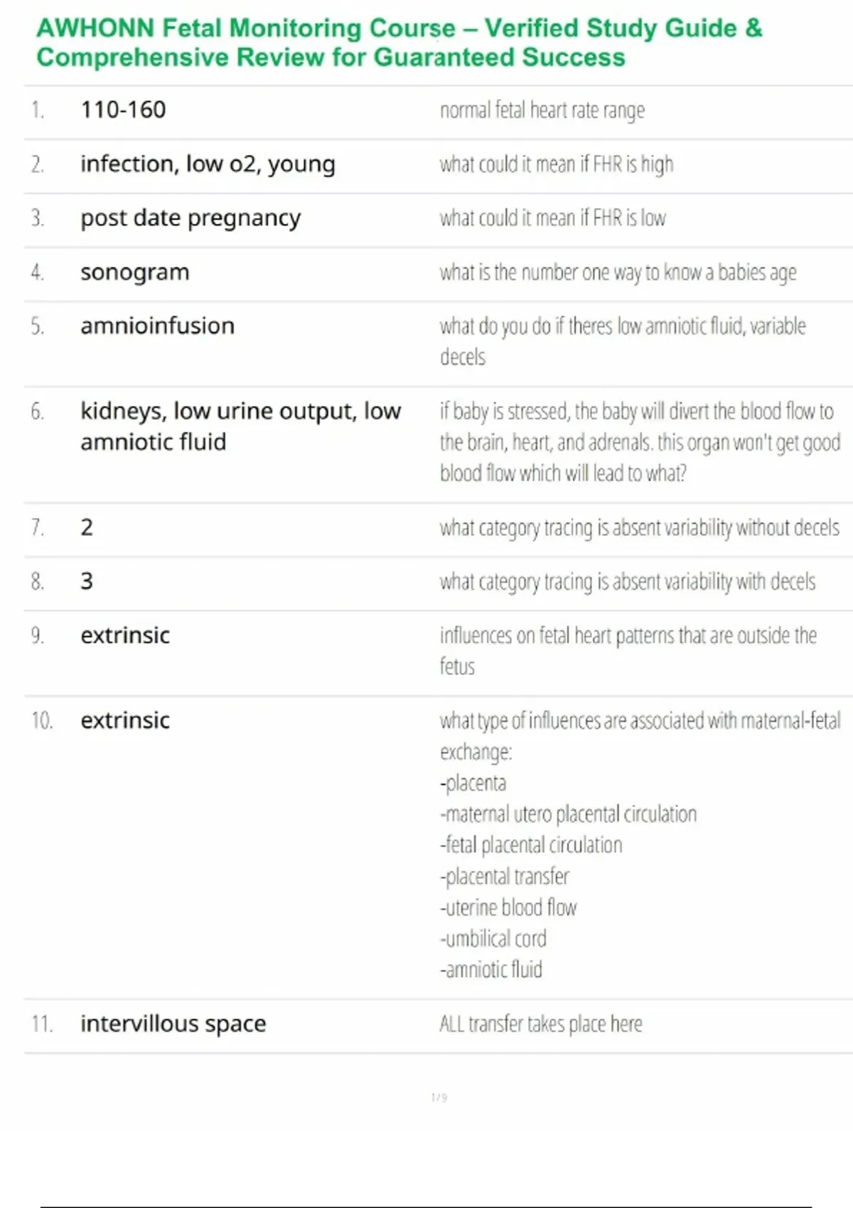 AWHONN Fetal Monitoring Course – Verified Study Guide & Comprehensive Review for Guaranteed Success