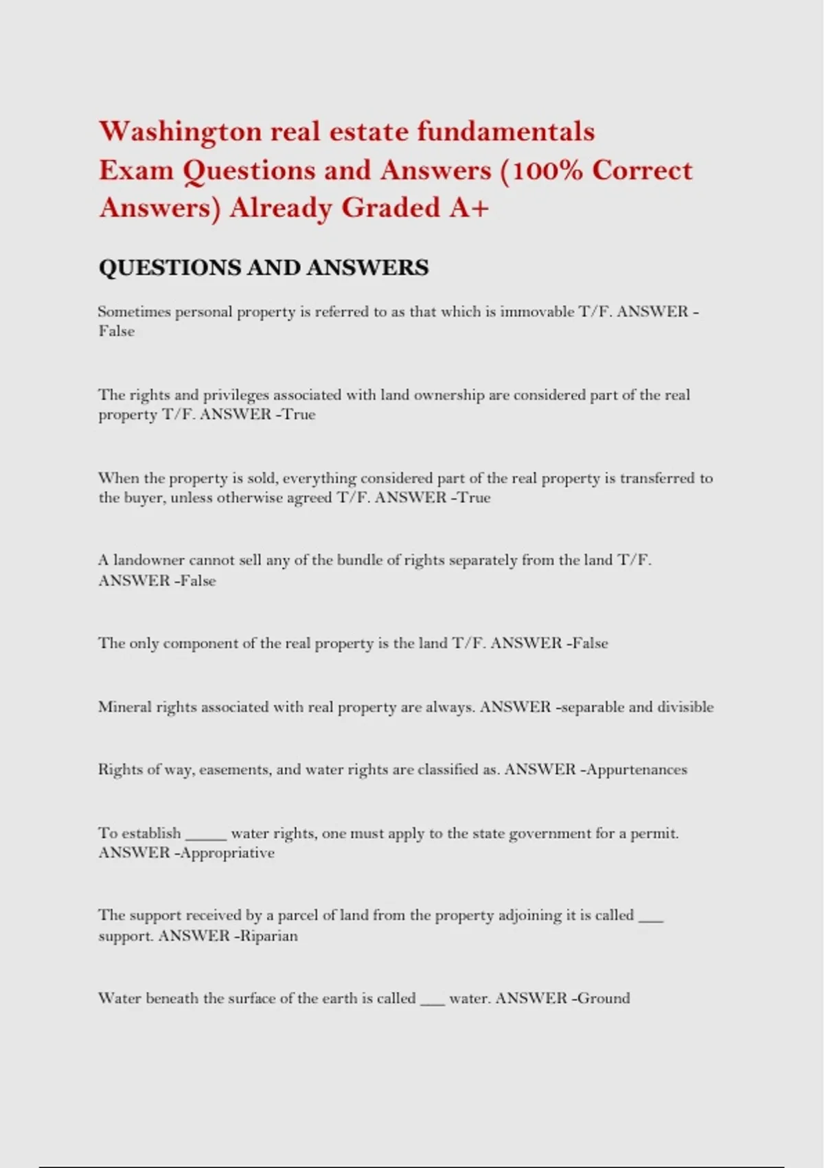 Washington real estate fundamentals Exam Questions and Answers (100% Correct Answers) Already Graded A+