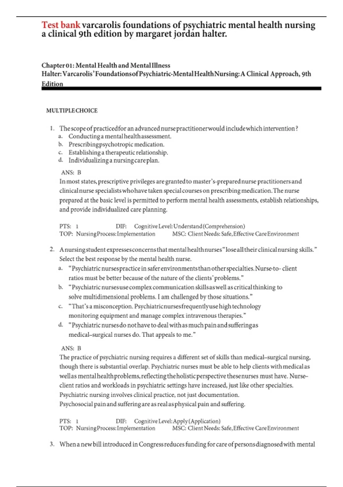 2. A nursing studentexpressesconcernsthatmentalhealthnurses“loseall theirclinical nursing skills.”