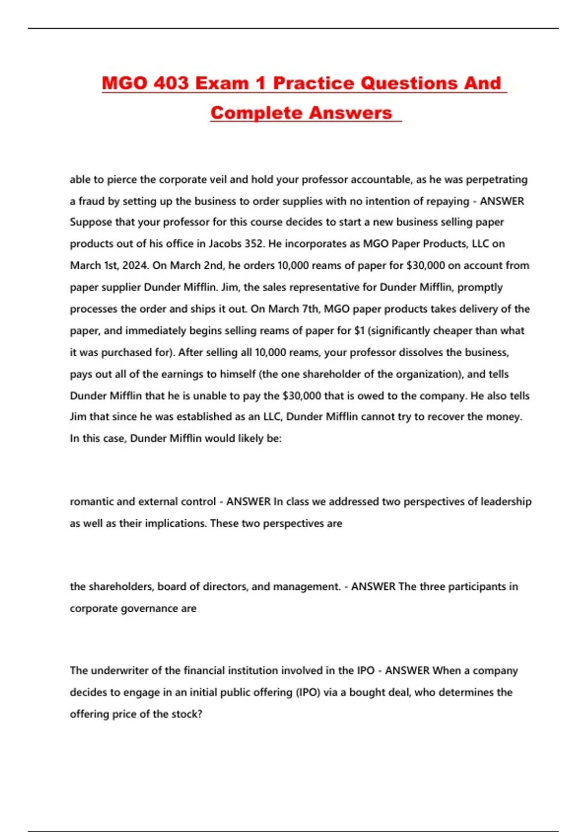 MGO 403 Exam 1 Practice Questions And Complete Answers ...