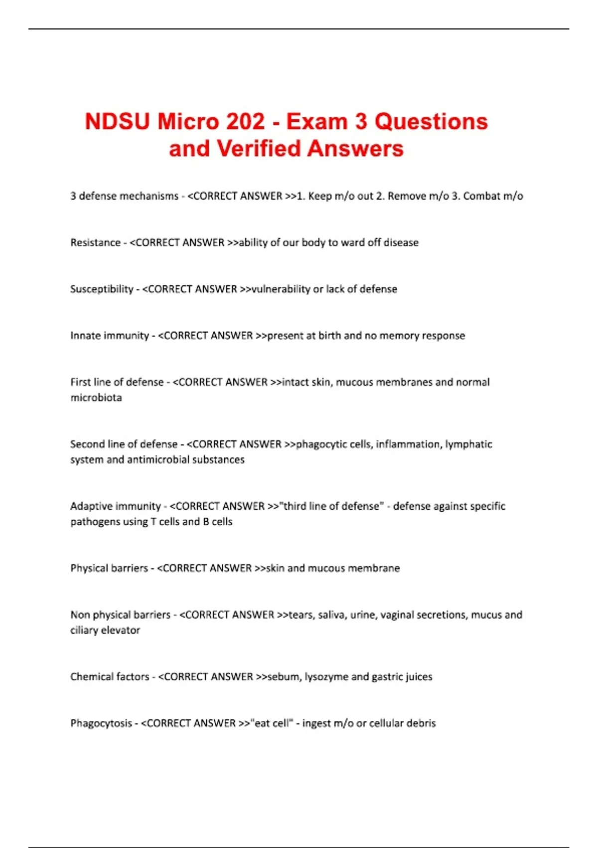 NDSU Micro 202 - Exam 3 Questions and Verified Answers