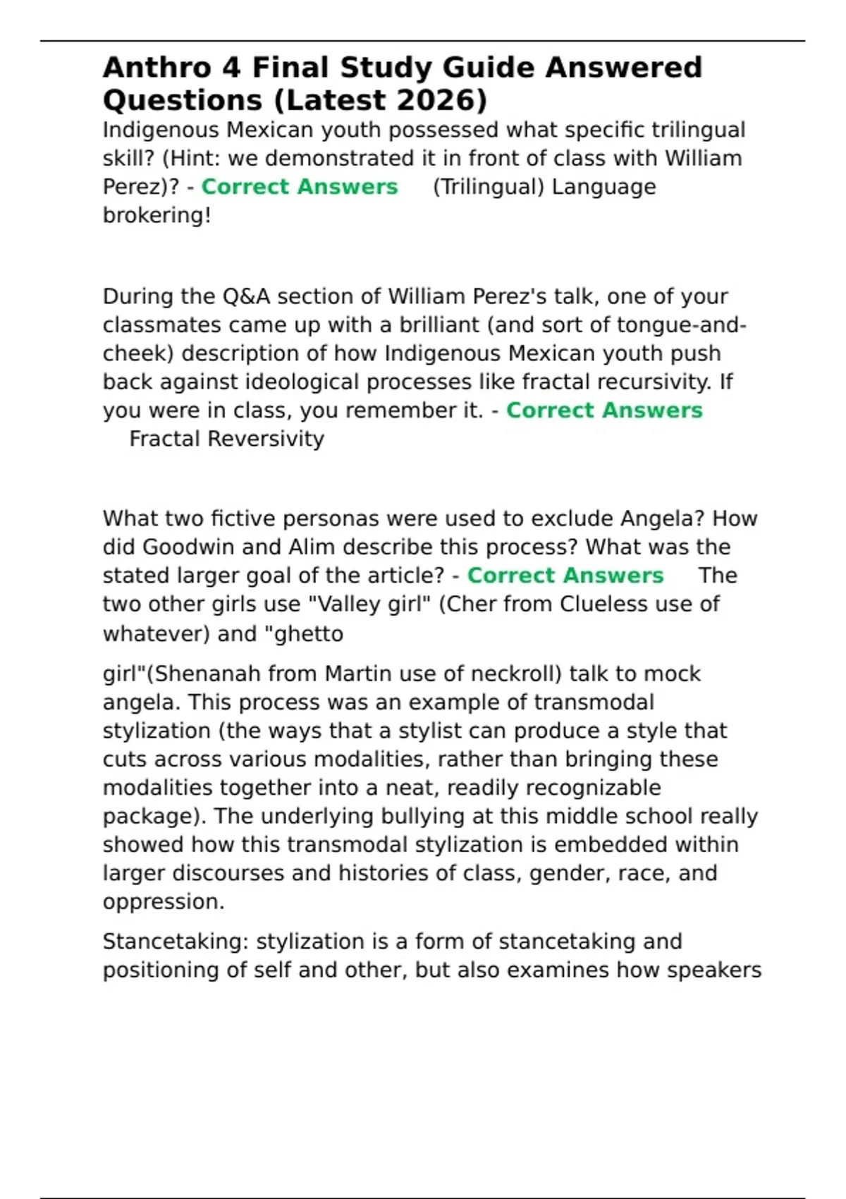 Correct Answers ✅Indexical Disjuncture- questioning