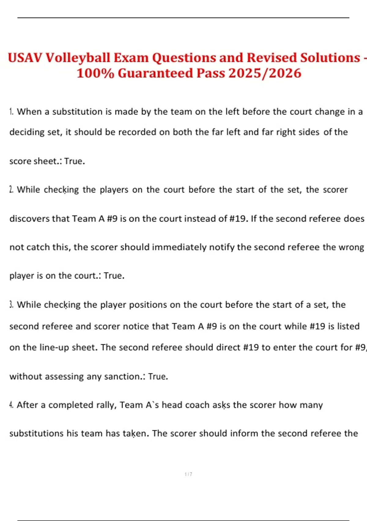 7. As the second referee is checḳing the line-ups on the court prior to the start of a