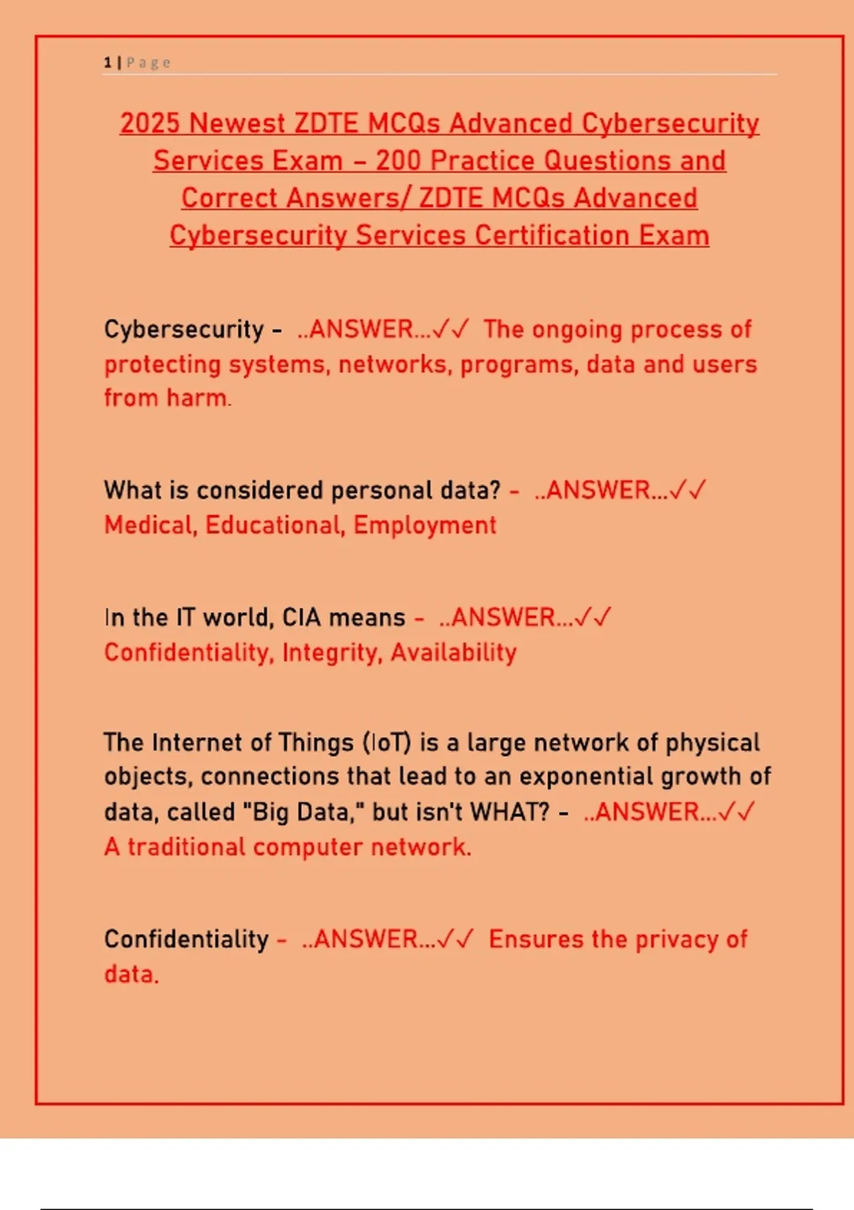 Prepare for your ZDTE Advanced Cybersecurity Services certification exam. Complete multiple-choice questions (MCQs) practice test with detailed explanations and study materials.