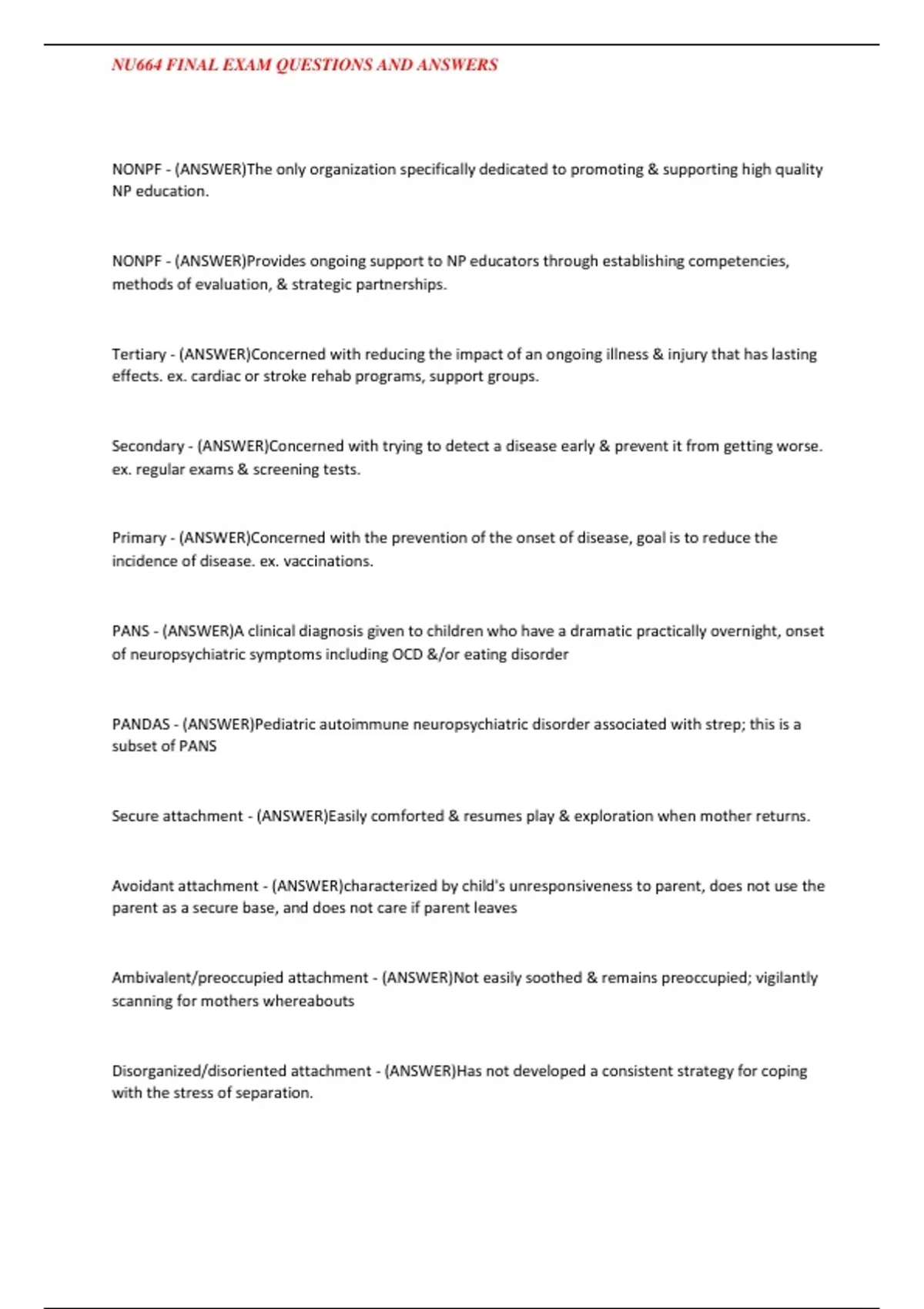 NU664 FINAL EXAM QUESTIONS AND ANSWERS